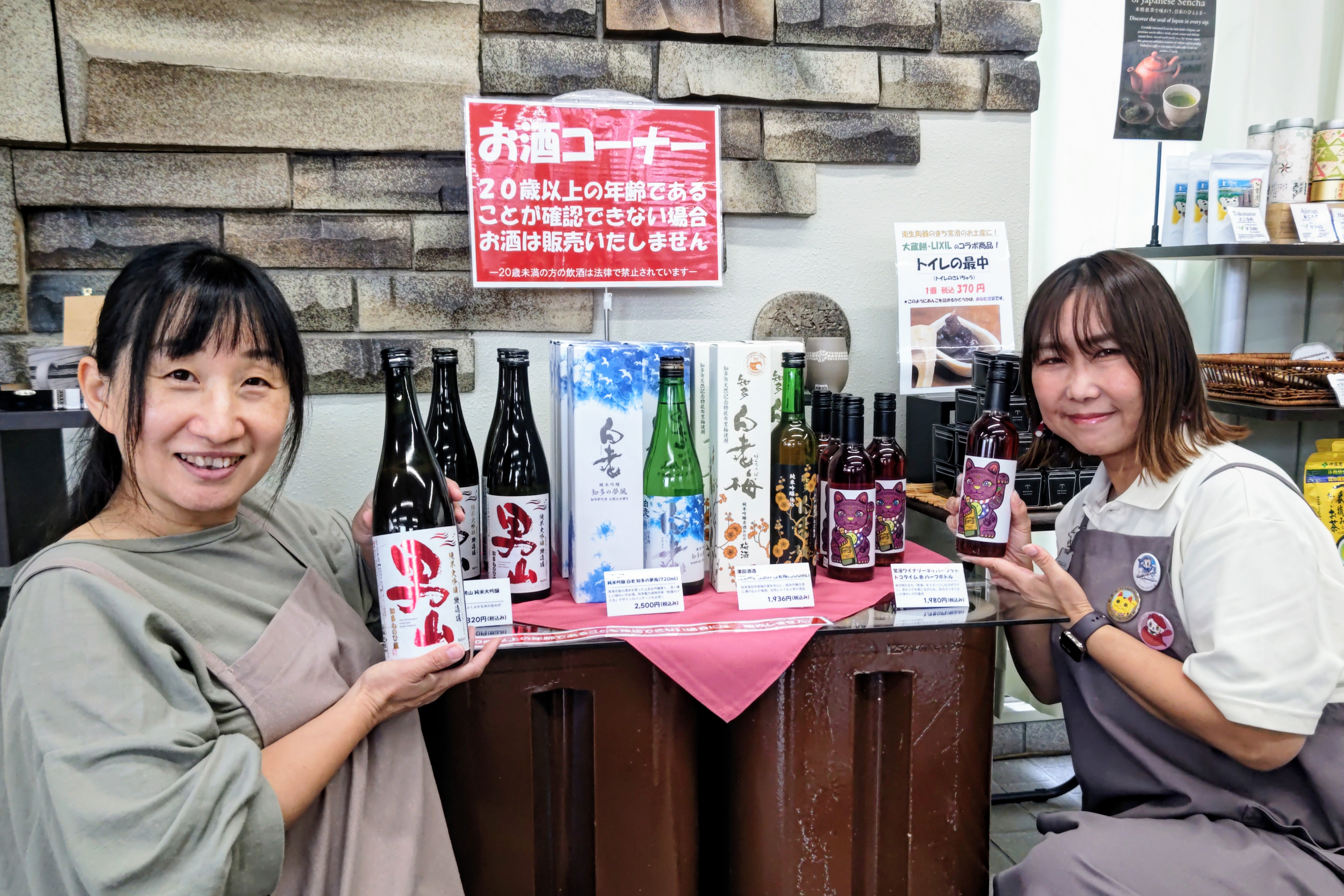 一般社団法人とこなめ観光協会では、日本の地酒がインバウンド客に人気であることから、やきもの散歩道のスタート・GOAL地点である陶磁器会館内の『とこなめ観光案内所 物産販売コーナー』にて、常滑の地酒とワインの販売を開始しました。