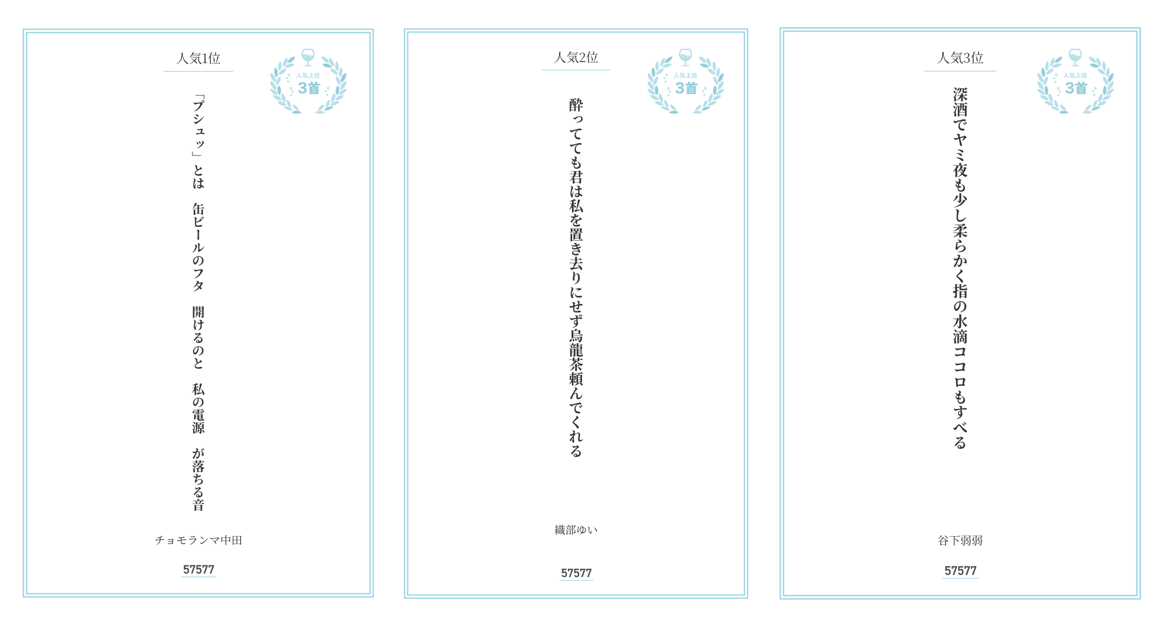 〈人気上位100首に選ばれた皆様へ〉