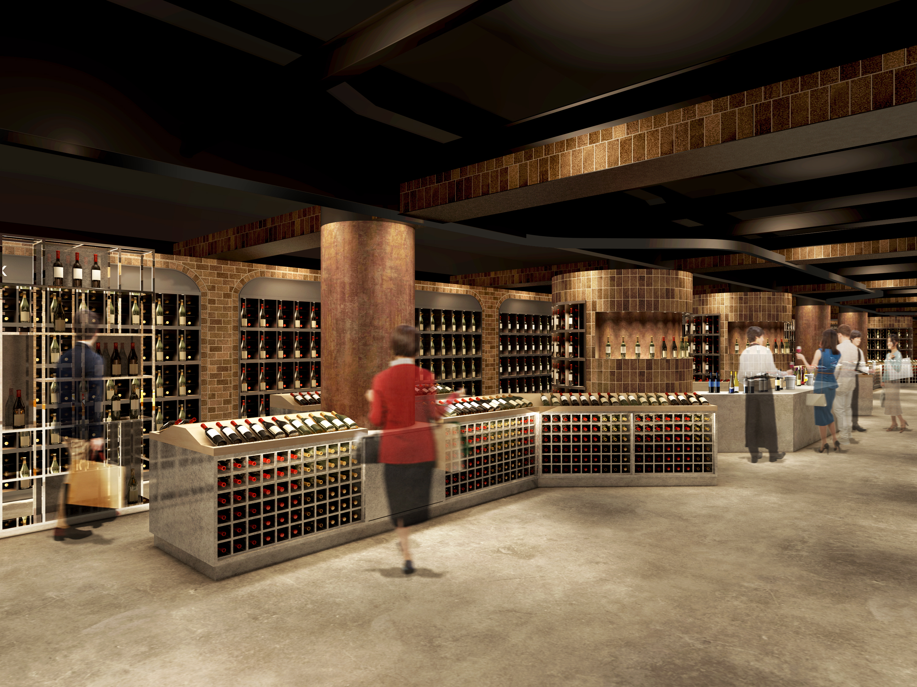 地下のワインカーヴを再現した空間デザインで選ぶ楽しさを演出します