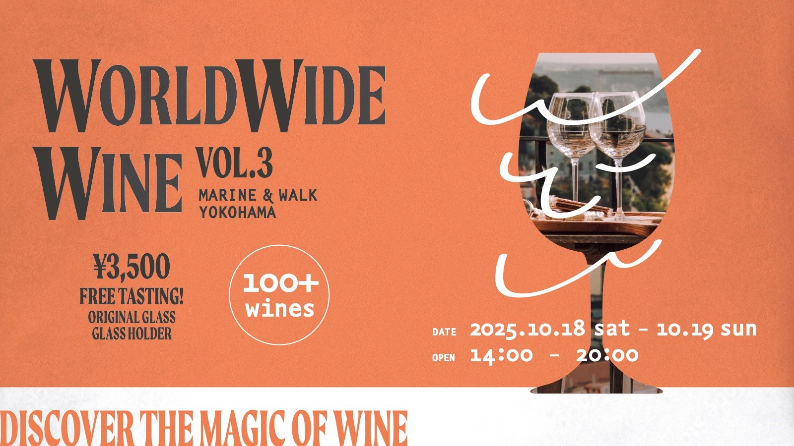 横浜港沿いのオープンモール・MARINE & WALK YOKOHAMA(所在地:神奈川県横浜市、以下「M&W」)は、日本各地のインポーターが一堂に会し、世界各国から厳選された100種類以上のワインを試飲し放題で楽しる、大好評イベントの第三弾「WORLD WIDE WINE VOL.3」を2025年10月18日(土)・19日(日)に開催します。