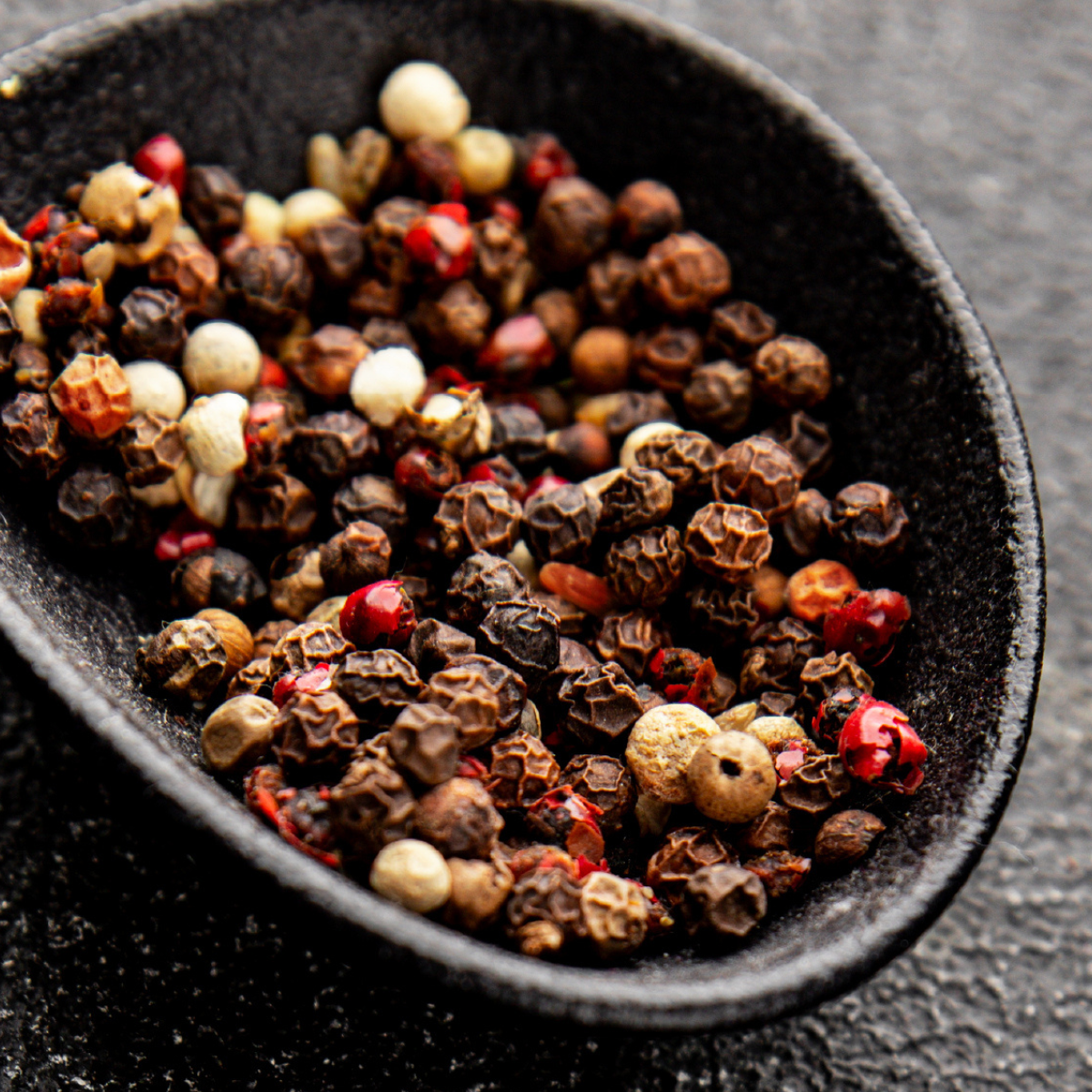 「思わずお酒が止まらなくなる」ようなアクセントを効かせるために、食感や味わいの異なる3種のペッパーを加えました。ピリリとした刺激を持つブラックペッパーと繊細な風味のホワイトペッパーをベースに、噛んだ瞬間に華やかな香りが広がる粒状のピンクペッパーを少量使用しました。3種のペッパーの奥深い刺激と余韻が、お酒の香りや旨味を引き立て優雅なハーモニーを奏でます。