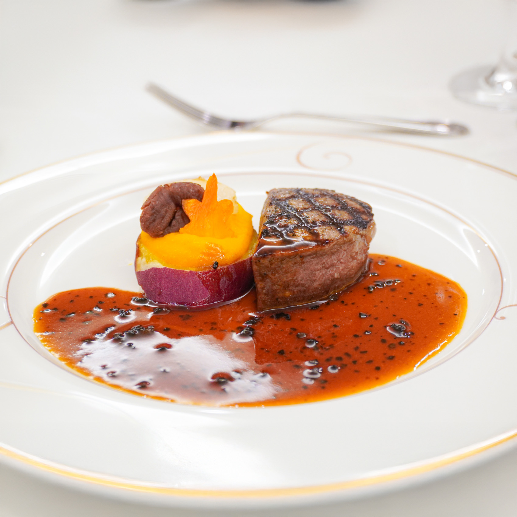 ・国産牛フィレ肉のグリエと秋野菜 トリュフソース