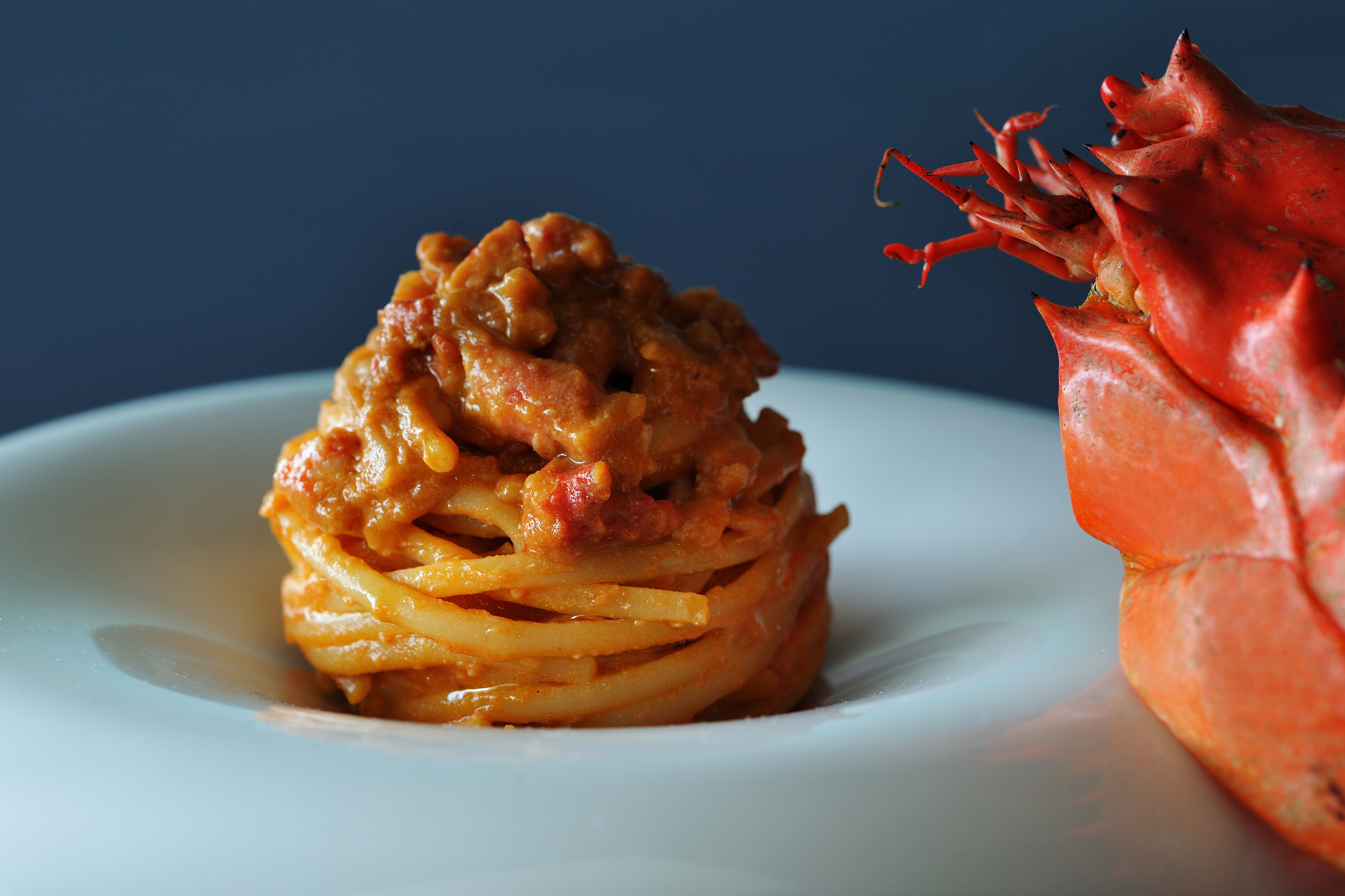 冬の海が育んだ蟹の風味が凝縮された温製パスタです。ソースは、イタリア・リグーリア州の郷土料理である「チュッピン(*3)」の調理法を活かし、蟹の身だけでなく、殻までじっくり煮込むことで、濃厚な旨みと香ばしさが最大限に引き出されています。身をふんだんに含んだ濃厚なソースがリングイネと絡み、蟹の旨みを余すことなく堪能できます。
