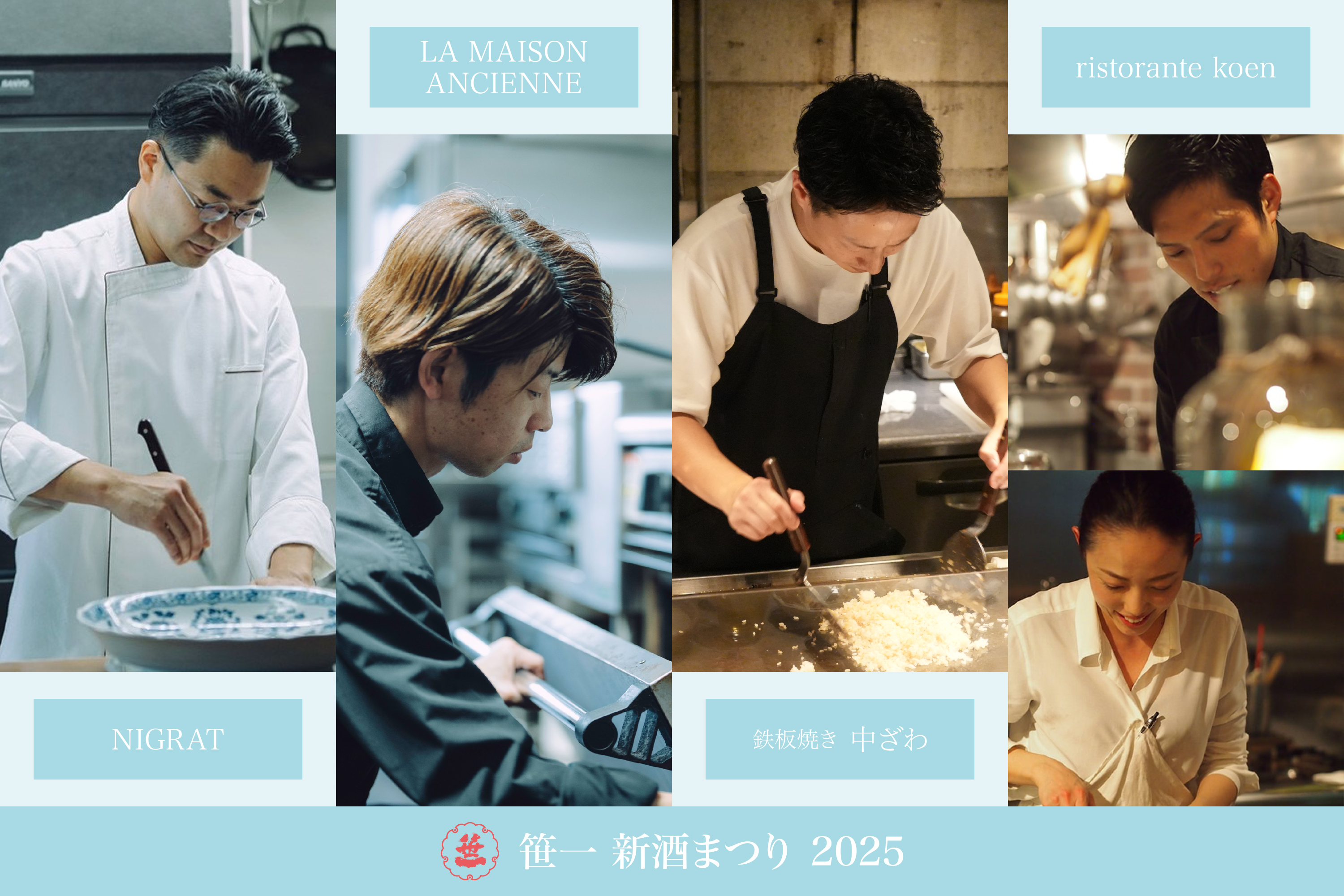 また、新酒まつり当日は、山梨を代表するレストランが両日限定で特別出店し、世界的日本酒コンクールでプラチナ賞を受賞したラグジュアリー日本酒「旦」とペアリングコラボレーションするメニューを提供します。さらに、蔵元直営カフェ「SASAICHI KRAND CAFE(ササイチクランドカフェ)」では、新酒まつり限定で「笹一酒粕チーズケーキアイス」を提供します。