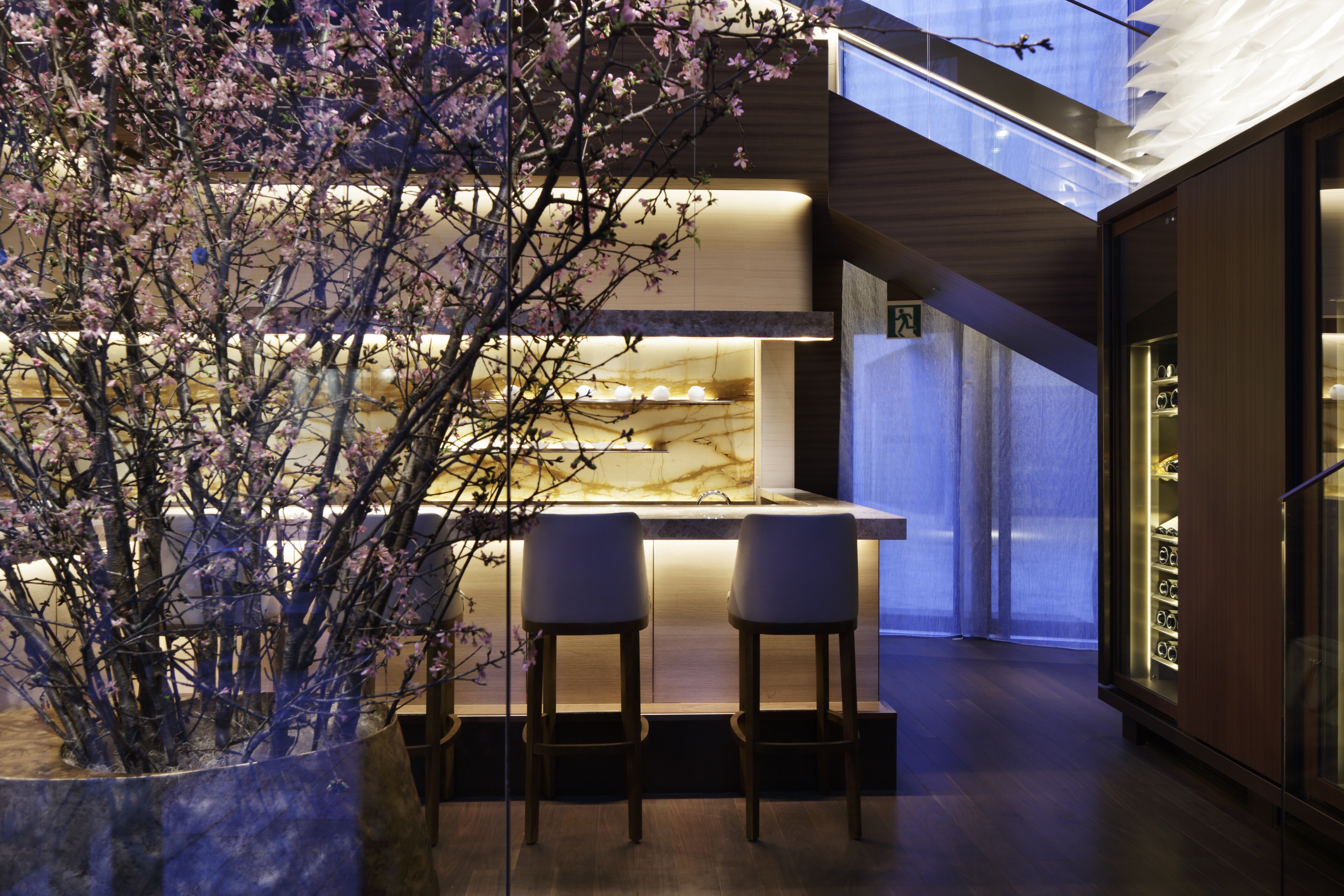 インテリアは、一戸建ての造りで1階にはライブ感のある14席のカウンター席を配し、2階には、6名様までご利用いただけるプライベートルームを1部屋ご用意しております。けやき坂に面した大きな窓があり、クリスマスシーズンにはイルミネーションを眺めながらお食事を楽しめます。接待や仲間との食事会に最適な空間です。