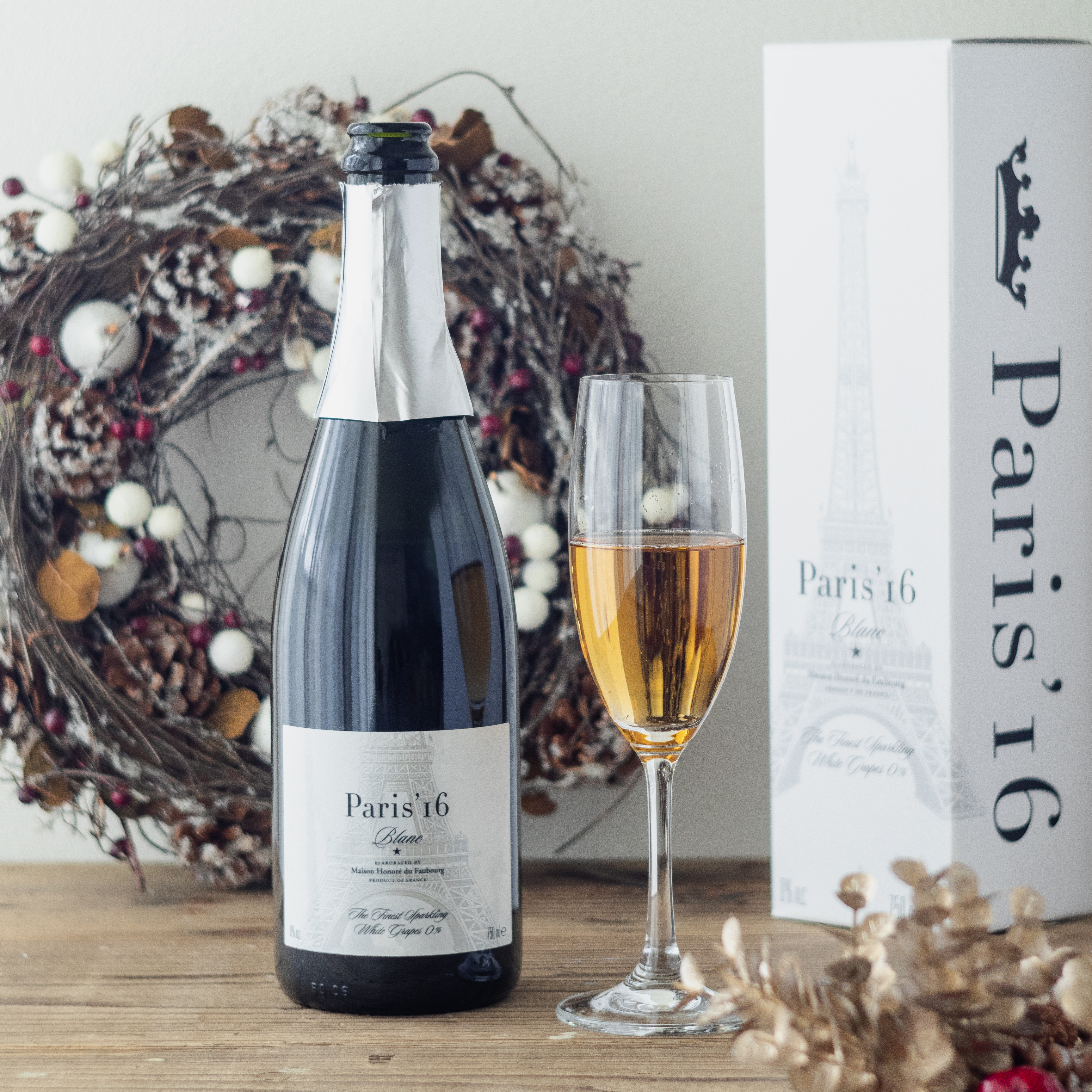 デビュー翌年にはフランス農業工業食品開発機構の健康食品部門でグランプリを受賞した他、日本でも「接待の手土産」特選を受けるなど、その品質は折り紙つき。後に誕生した姉妹ブランド「Paris’16」は、スタイリッシュなボトルと華やかな香りが魅力。お酒を控えたい方やご家族で過ごす聖夜にもぴったりの、“心を満たす泡”です。
