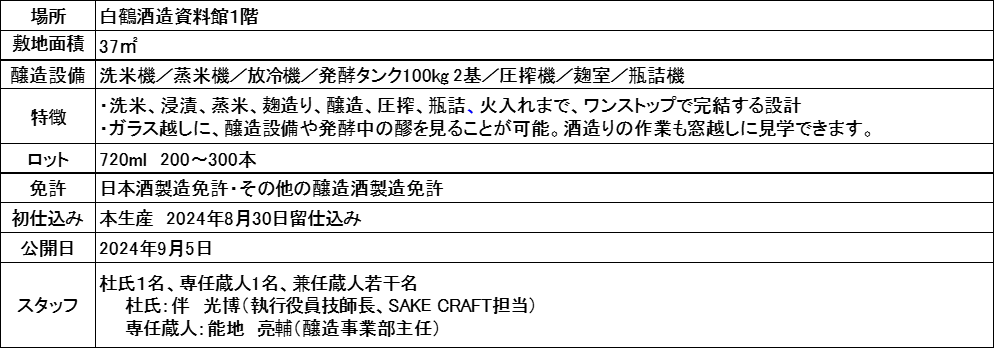 白鶴酒造資料館内に2024年9月にオープンしたマイクロブルワリーです。わずか37㎡の空間に、最高品質の大吟醸も造ることができる設備を導入し、洗米・浸漬・蒸米・製麹・発酵・搾り・ろ過・瓶詰めまで、酒造りの全工程を行います。来館者は、ガラス越しに醸造設備や発酵中の醪を見ることができ、スケジュールが合えば酒造りの作業も見学することができます。