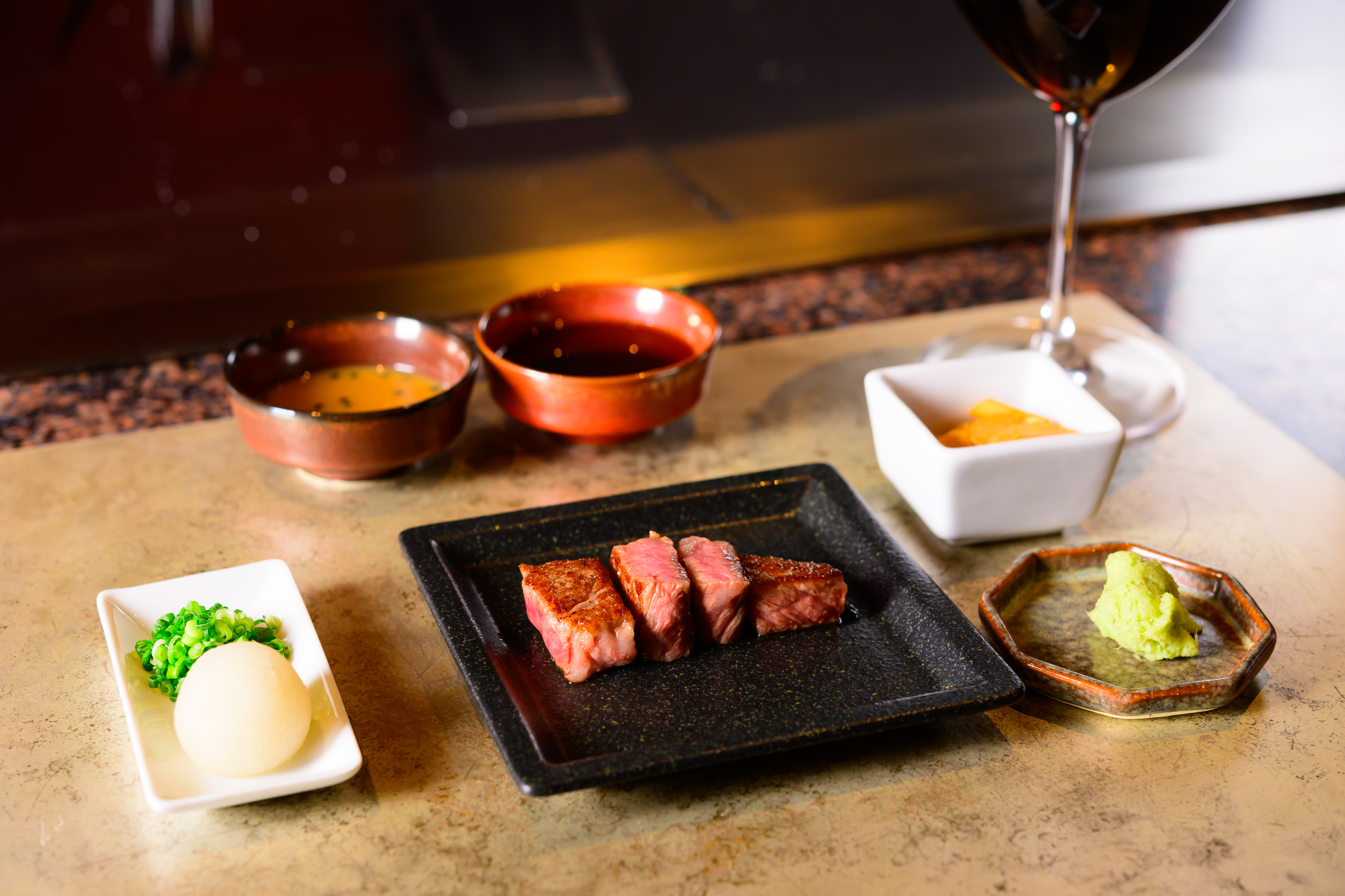噛むほどに肉本来の旨味が広がる 「松阪牛」を鉄板焼きの技法で仕立てた逸品を含む、全7品の特別コースをご用意。 上位コースの中では部位を食べ比べたりと、松阪牛をくまなくお楽しみいただけます。