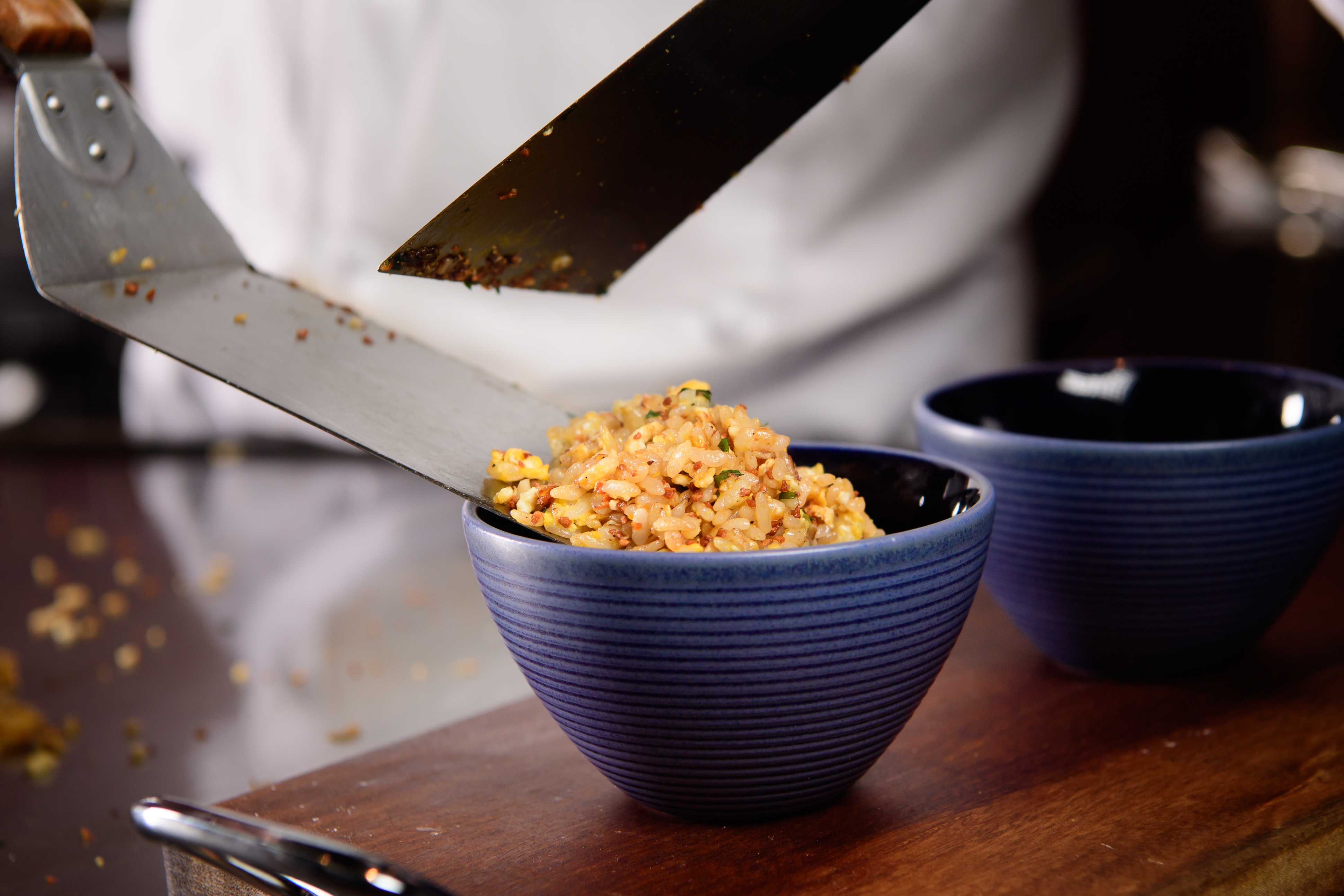 鉄板焼きの〆を飾る、当店の自慢のガーリックライス。特選玉子を贅沢に使用し、熱で一気に香りを立てたガーリックライスと共に、職人の手際で米一粒一粒に旨味を閉じ込めます。パラパラでしっとり、極上の風味を纏ったご飯は、一度食べたら忘れられない美味しさ。べたつかない究極の炒め加減で、最後まで飽きさせない美味しさをご堪能下さい。