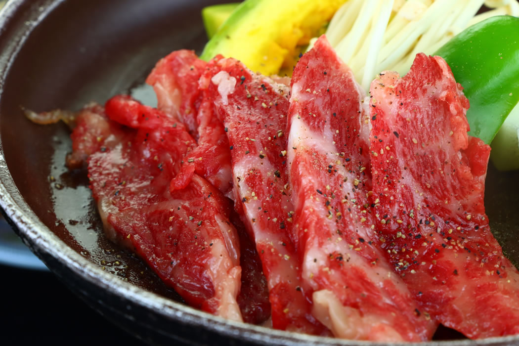 鮮やかな霜降りで、どの部位を食べても口いっぱいに甘みが広がるのが「塙牛」特徴。ボジョレー・ヌーヴォーとの相性をご堪能いただける絶好の機会となっております。