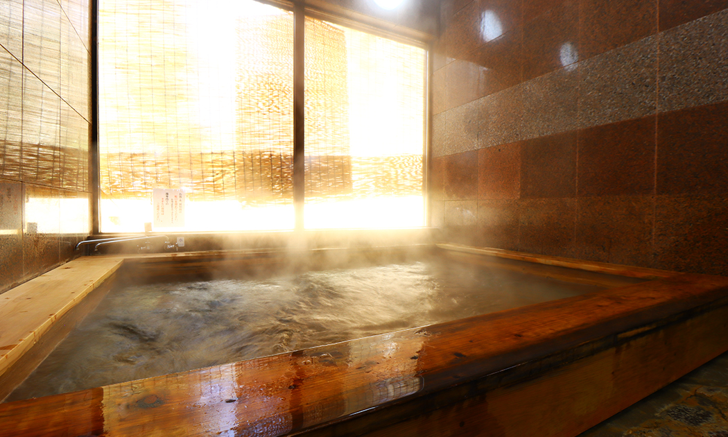 とろみのあるお湯で、湯触りも抜群。浴槽の檜の匂いが心を満たし、休息を誘う、〝美人の湯〟です。