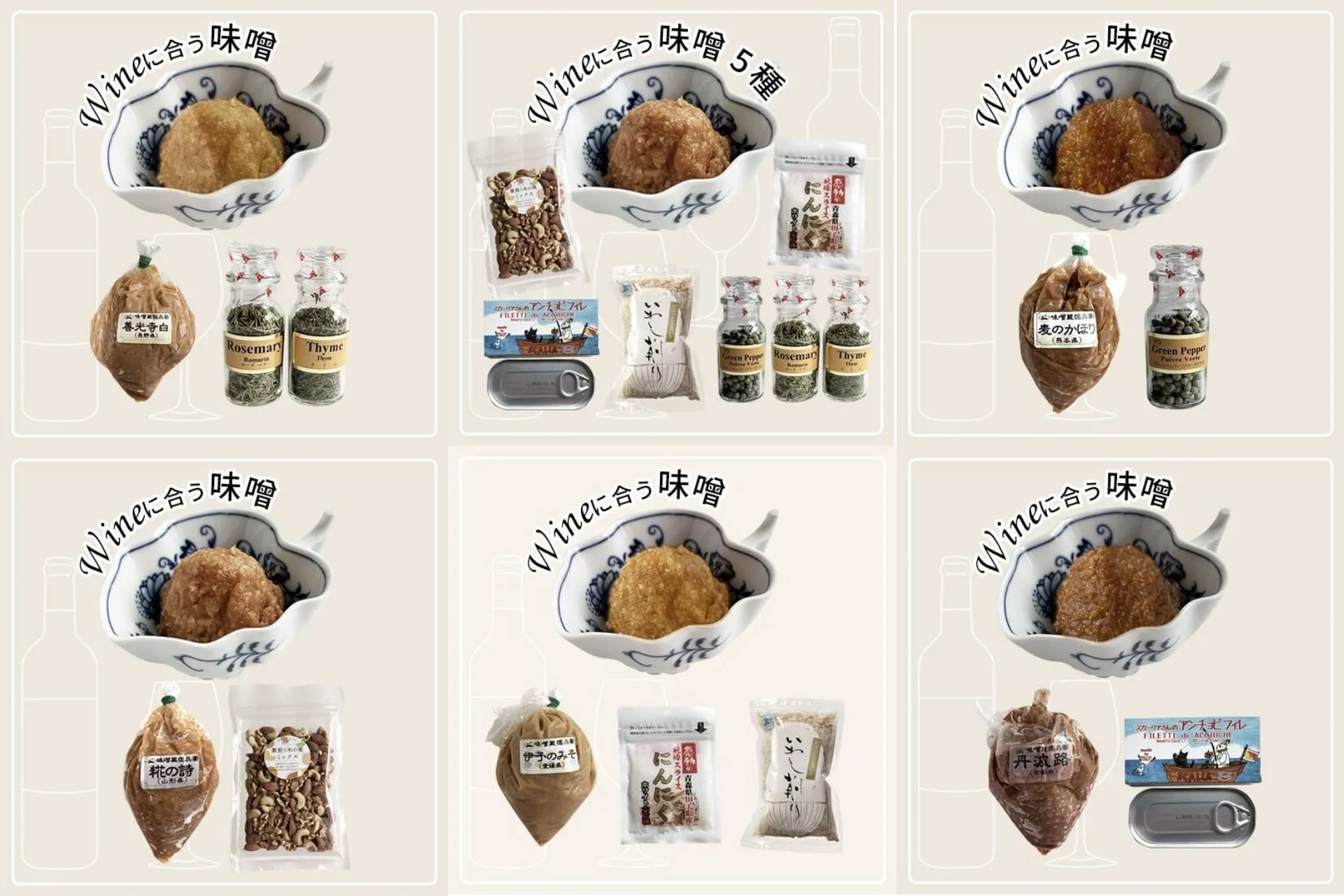 本商品は、当社の味噌の中でも特にワインとの相性が良いものを選び、さらに本格的なおつまみを簡単に作れるよう、ワインに合う「あると嬉しい食材」を組み合わせたセットです。「調理に時間をかけたくない」「でも本格的なおつまみでワインを楽しみたい」という方に最適です。