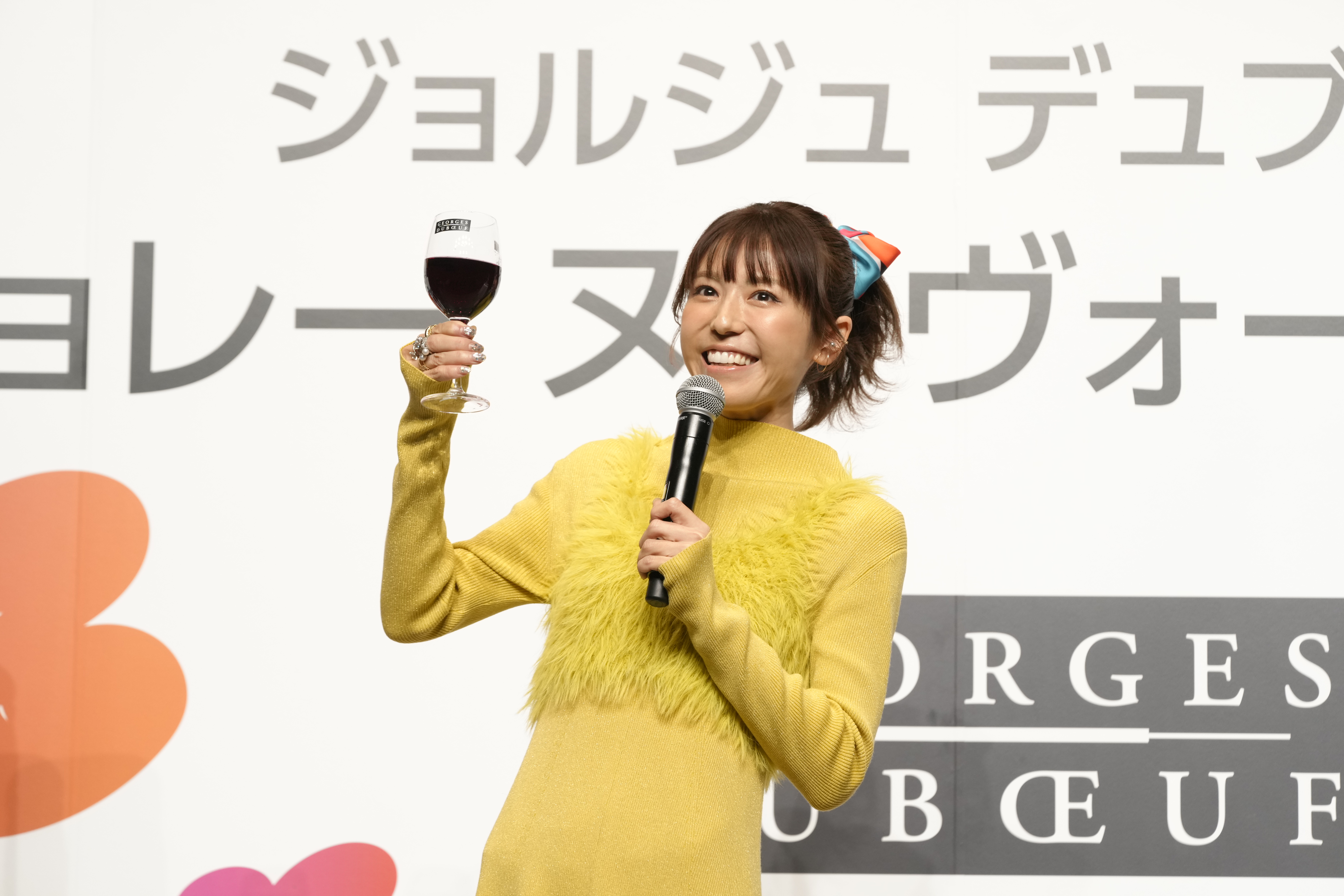 「1日宣伝部長」若槻千夏さんがボジョレー ヌーヴォー新ラベルにあわせた衣装で登場!若槻さんが今年“解禁”したものは「推し活」!?