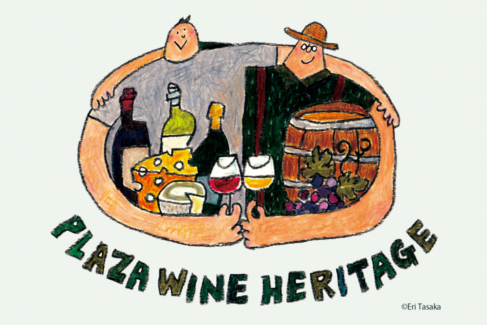 ワインとチーズを囲み、生産者とお客様のあたたかなコミュニケーションが優しく感じられる、「プラザワインヘリテージ」のオリジナルロゴ。