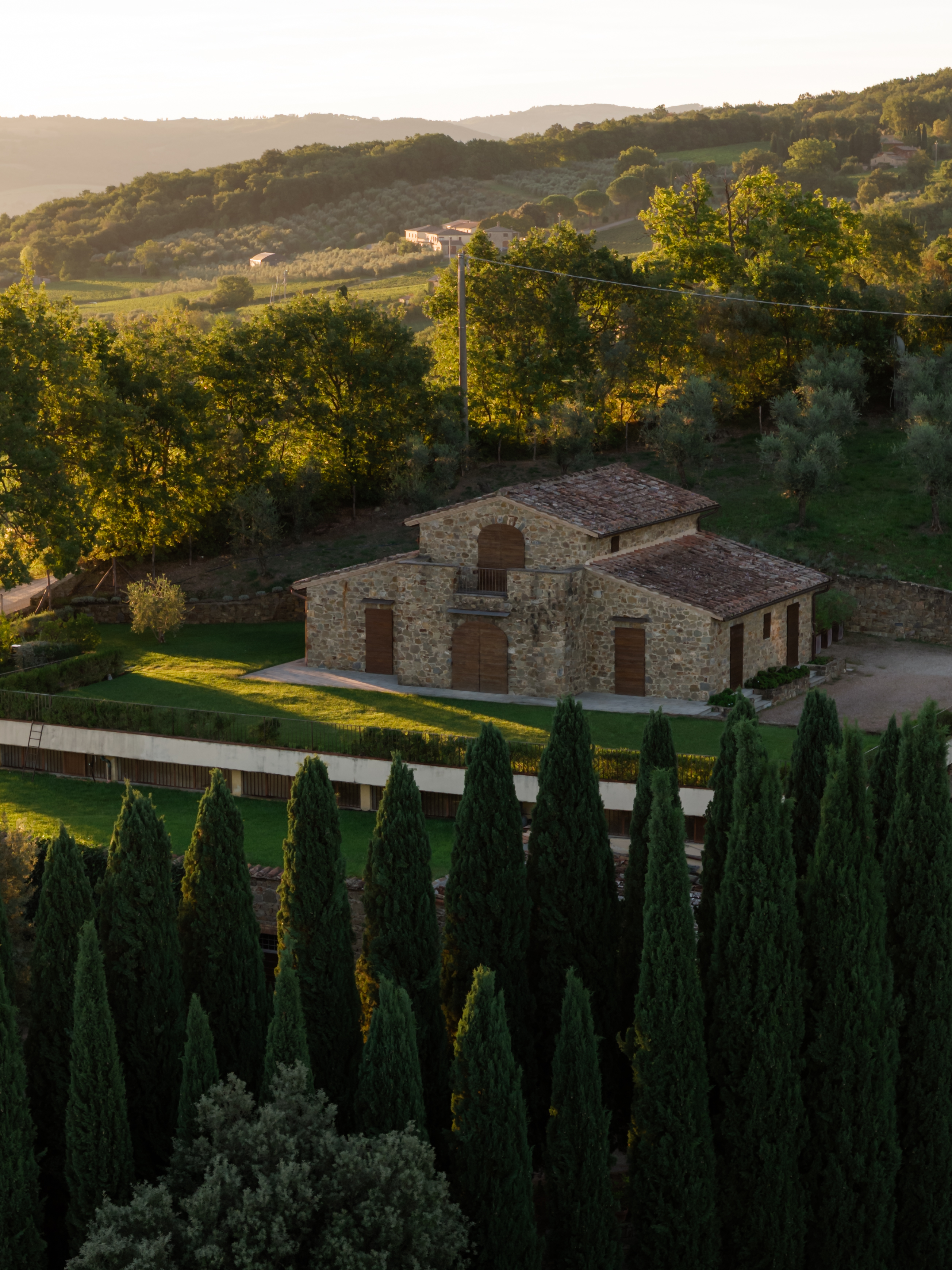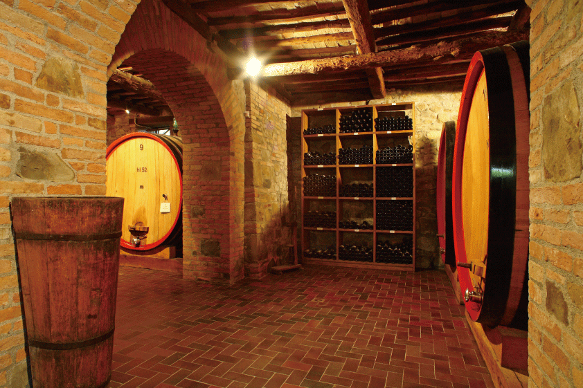 アルコール発酵およびマロラクティック発酵が完了したワインはステンレスタンクから伝統的なスラヴォニア産大樽に移され熟成されます(一部ワインはフランス産小樽を使用)。エントリーワインである「ポッジョ・リ・アンジェリ」はフレッシュさを生かすため4か月と短めの熟成を経て瓶詰めされますが、他のワインは最低12か月、リゼルヴァは48か月の長期熟成を経て瓶詰めされます。