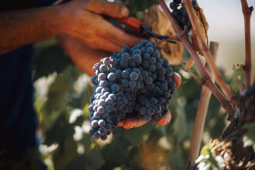 ラ・ジェルラでは、収穫は厳密に手作業で行われます。なぜなら、熟練した経験豊富な作業員による注意深い選別能力は、いかなる機械でも代替できないと確信しているからです。慎重な「一次選果」を経て、本収穫は通常9月末に実施されます。輸送中の損傷を防ぎ、ブドウの健全性・完全性を保つため、15kgのみをケースに入れ慎重に醸造所に運ばれます。
