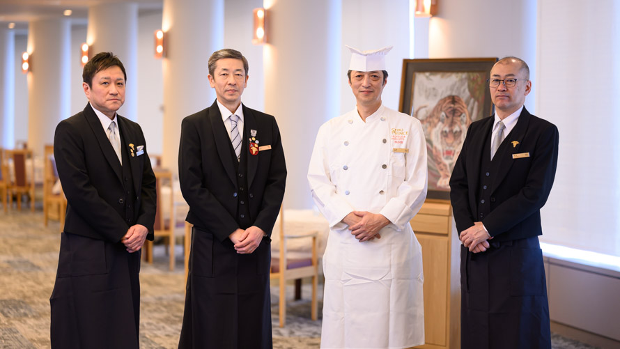 プリンスホテルの中国料理調理人として36年間にわたり培ってきた中国料理の伝統を継承し、これまでの経験と技を礎に、北海道食材の魅力を最大限に引き出した料理の数々をご用意いたしました。前菜として「ズワイ蟹のタマゴ捲き山椒ソース乗せ」から始まり、「中国式北海道産鮮魚のお造りサラダ仕立て」や「上海蟹のみそ入りフカヒレスープ」。さらに調理長土居裕司が自らお客さまの席にお伺いし、目の前でご提供させていただく「北京ダック」など、歴代の味を受け継ぎつつ、北の恵みと共に仕上げた全9品の中国料理フルコースを心ゆくまでご堪能いただけます。