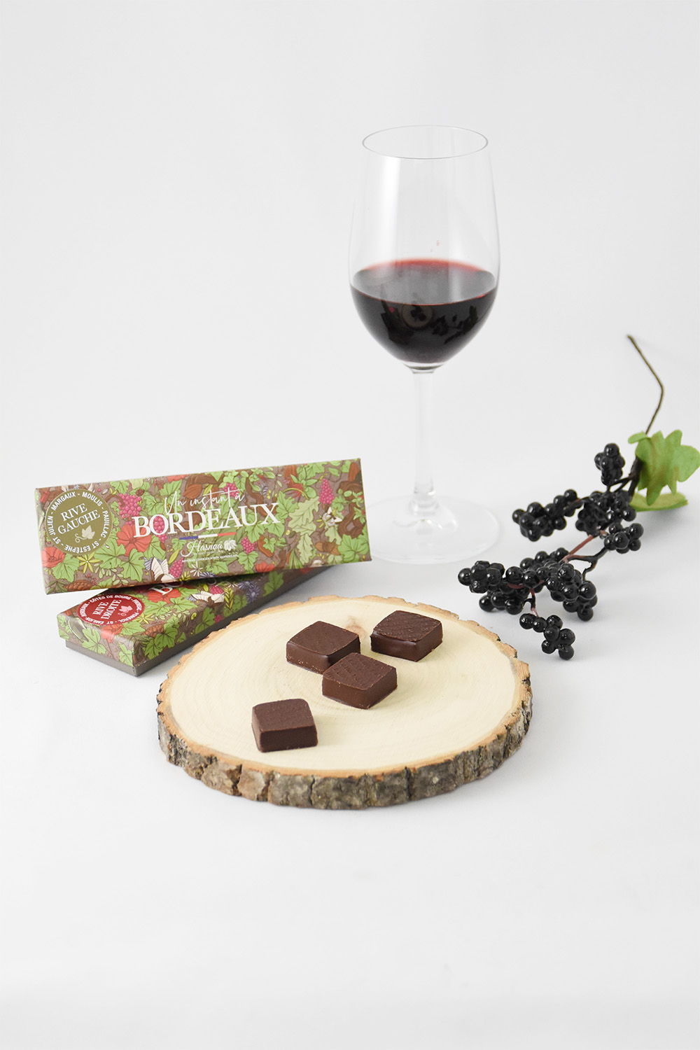 本拠地ボルドーの一流ワインシャトーと提携し、グランクリュ格付けワインの澱を使ったガナッシュが誕生しました。ワインの香り豊かなガナッシュは、ワインとショコラの異な るテロワールが紡ぐ特別な逸品です。