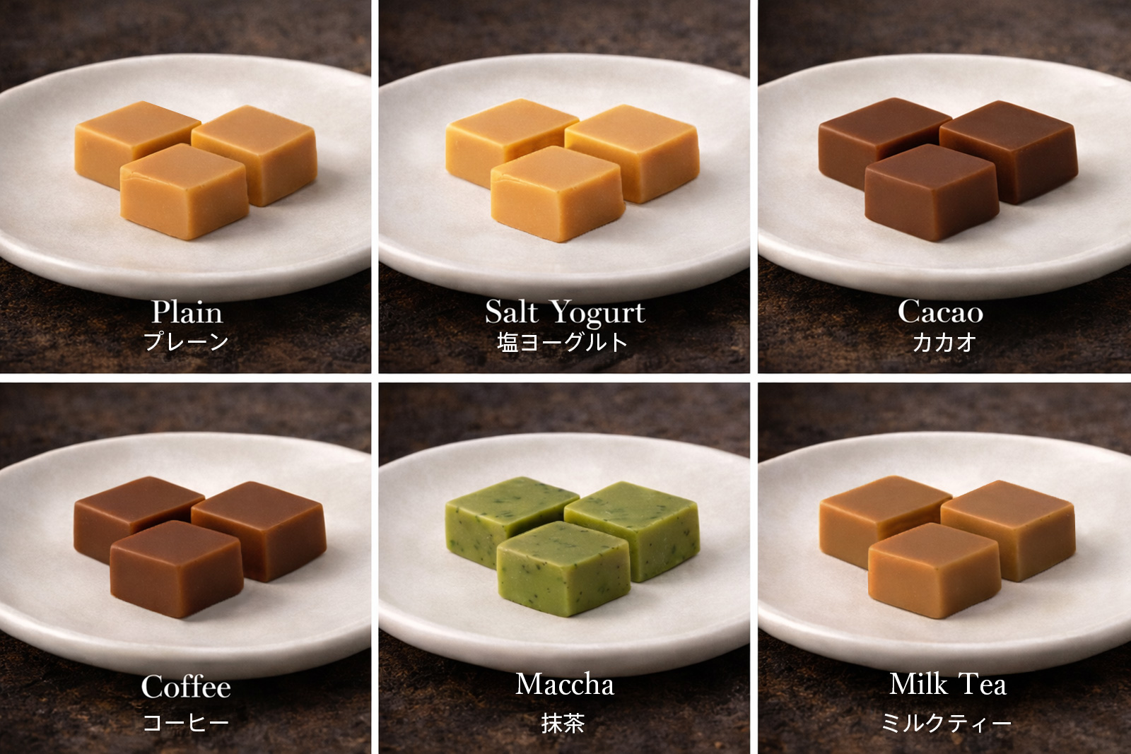 それぞれが、甘さ・塩味・ほろ苦さのバランスで異なる余韻を描きます。