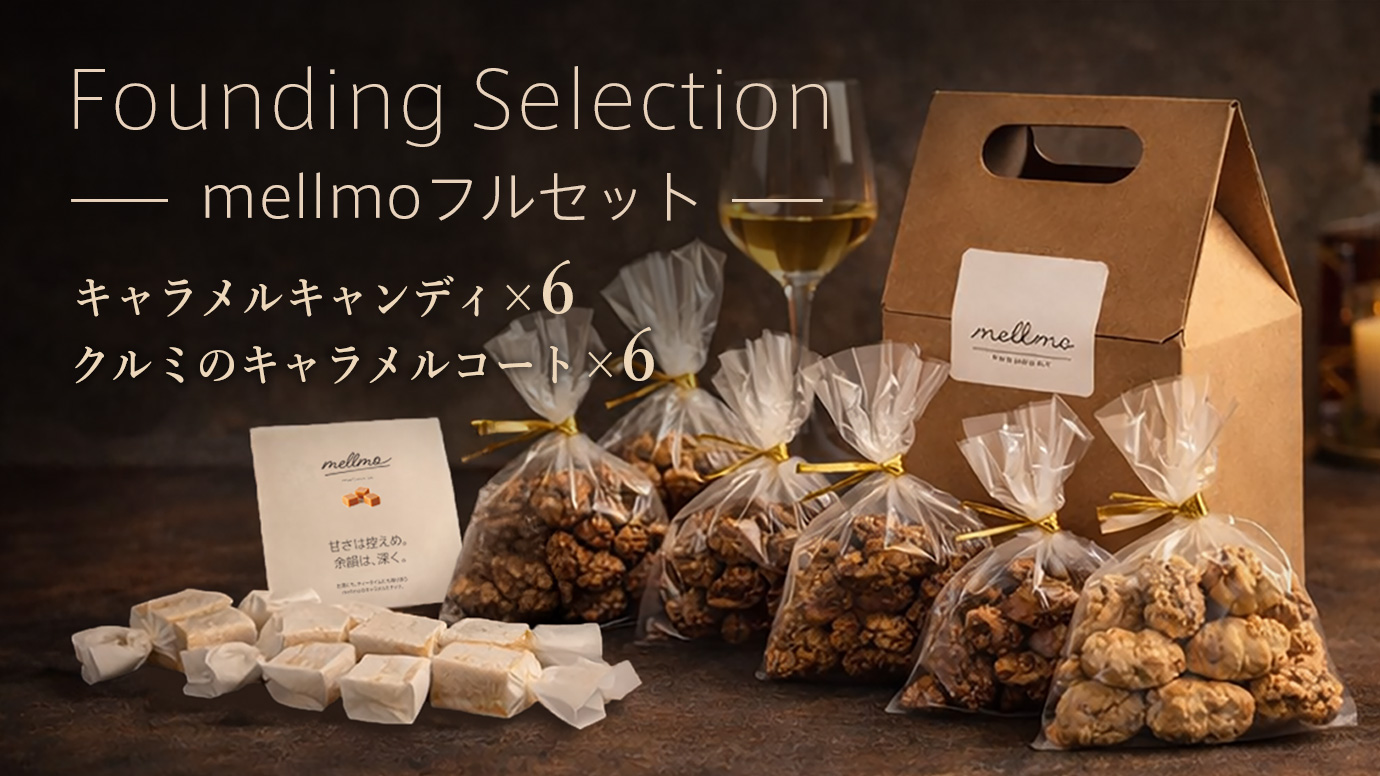 ワインやウイスキーに寄り添う、ワインやウイスキーに寄り添うキャラメルを軸にした大人のための菓子ブランド「mellmo」が、2026年3月6日正午より応援購入サービス「Makuake」に初登場します。