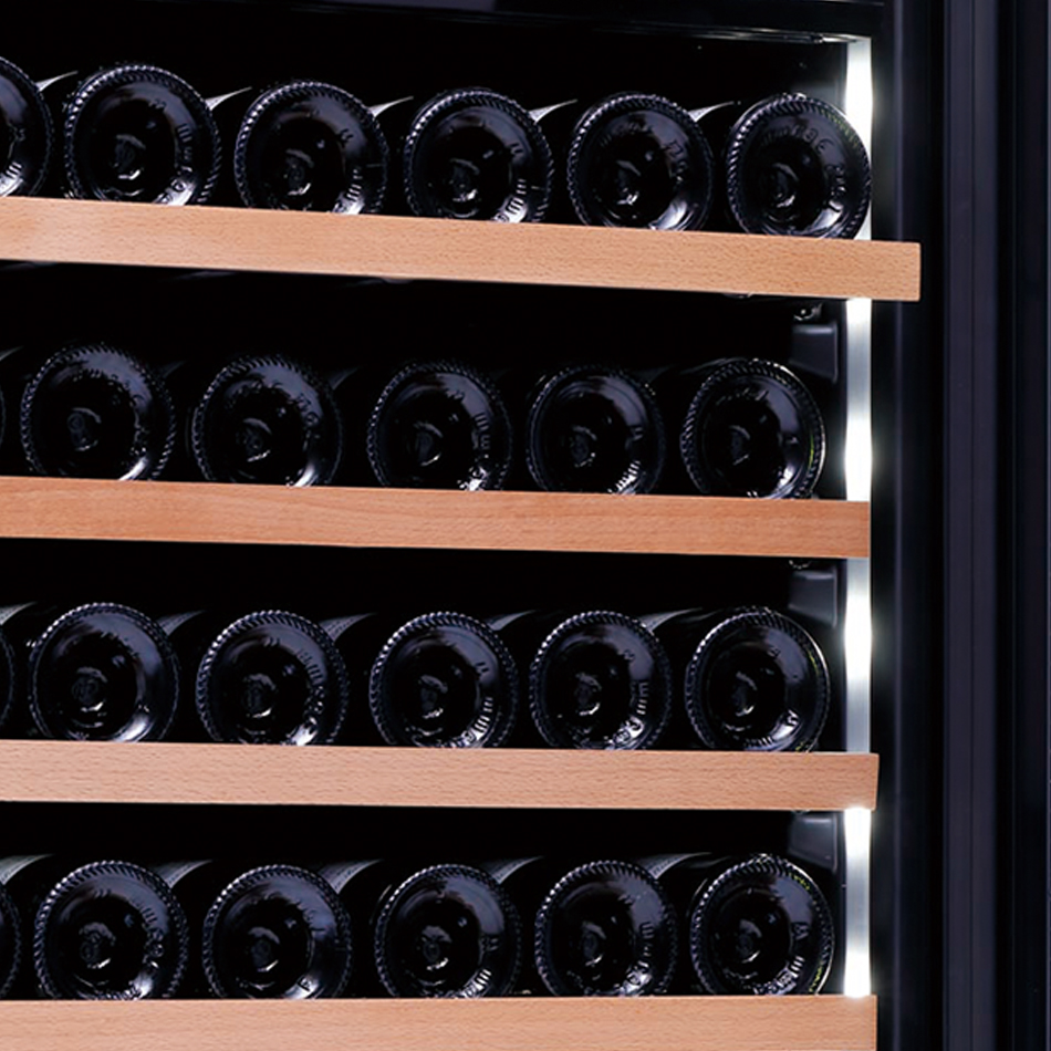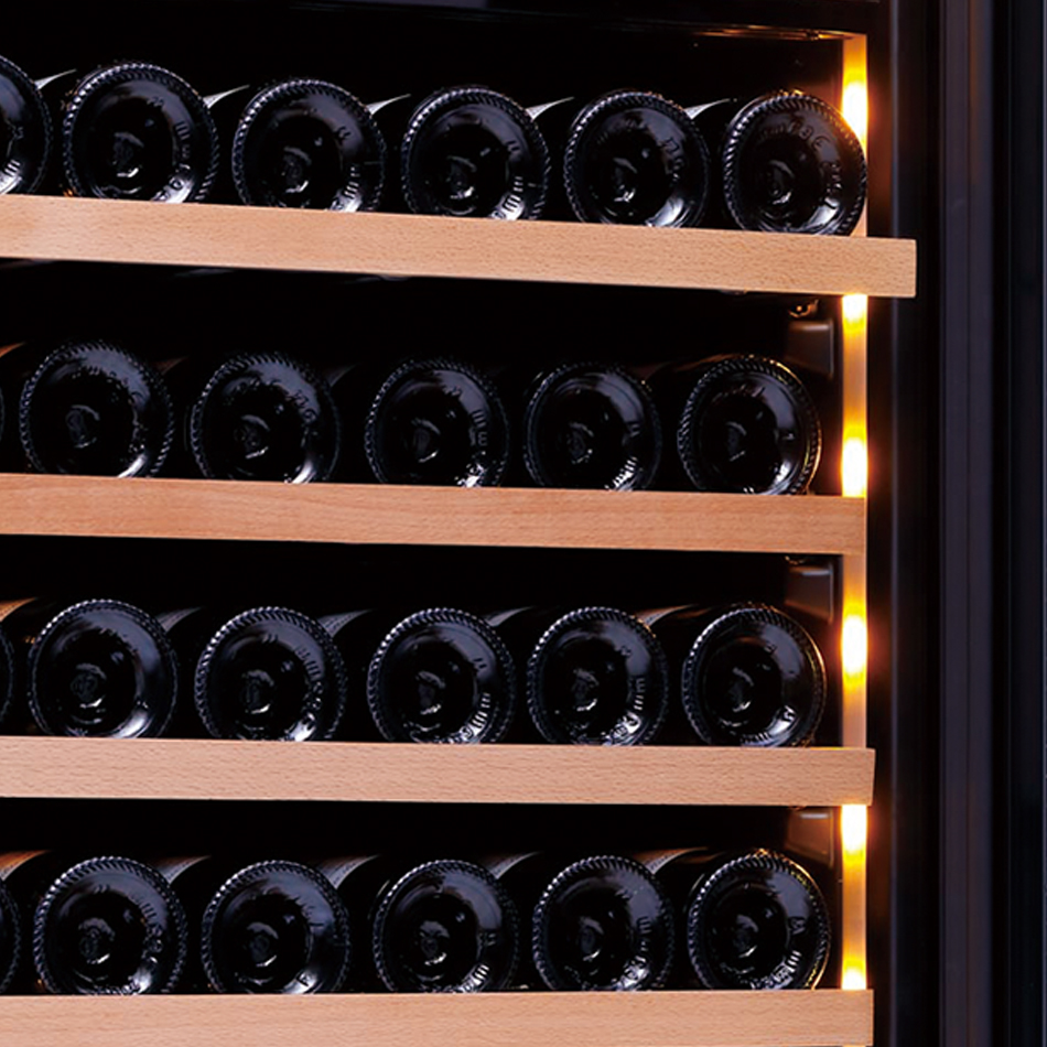 ・ボルドータイプのボトルなら最大144本、ブルゴーニュタイプのボトルなら最大132本を収納可能