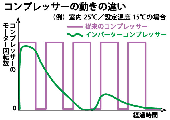 庫内温度の変化に応じて運転を細かく制御するインバーターコンプレッサーを採用。