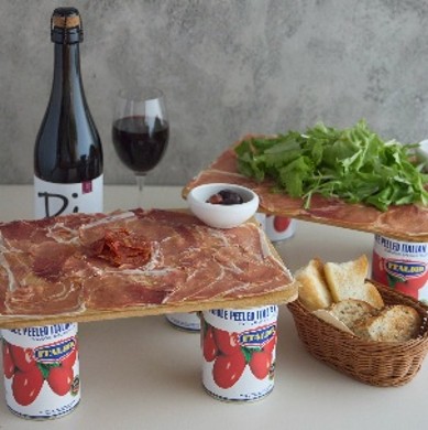 手前:元祖!生ハムとサラミのてんこ盛り/奥:ランブルスコ
