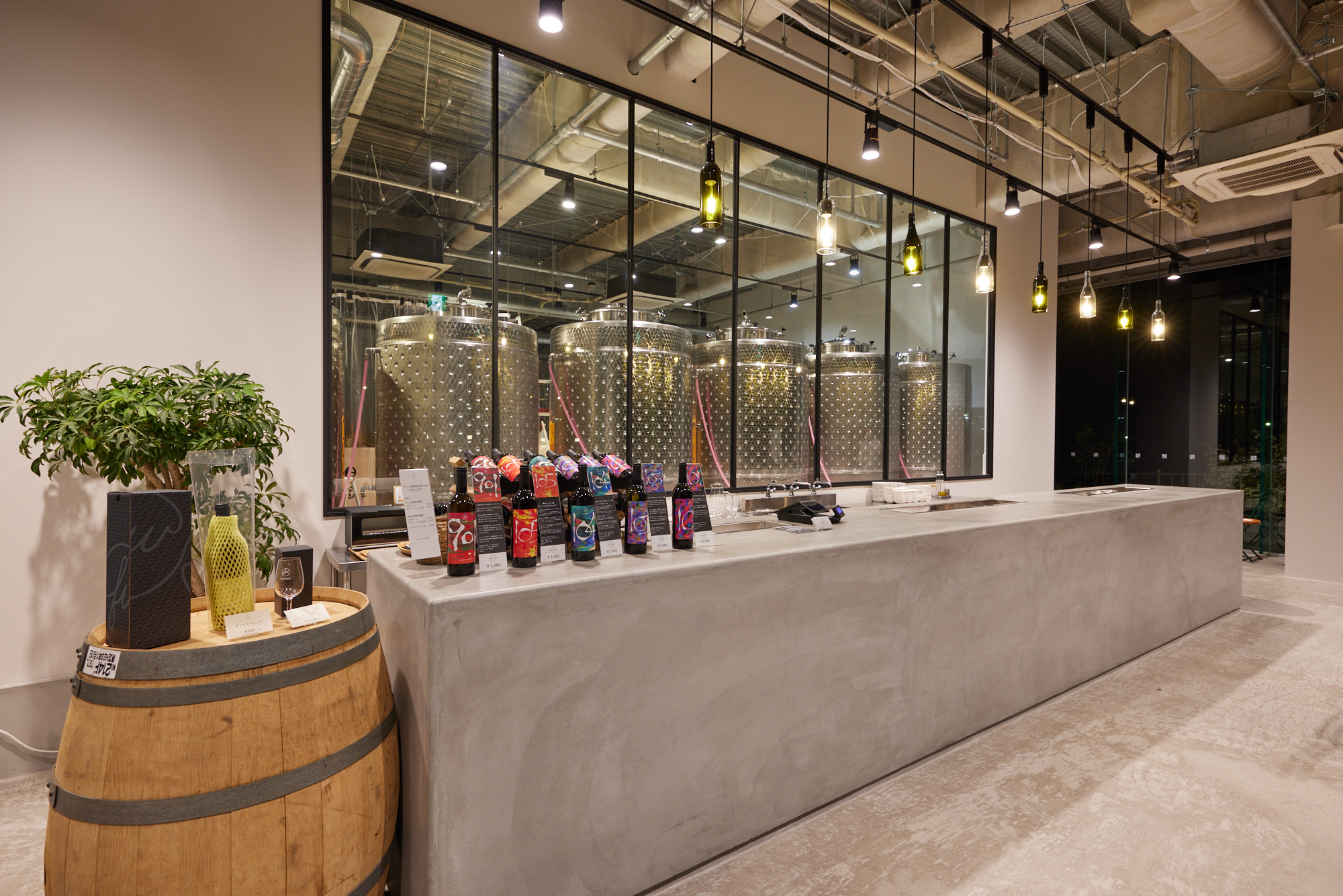 神戸市新港町ウォーターフロント地区のフェリシモ新社屋「Stage Felissimo」内に設立した都市型小規模ワイナリー。2021年6月17日に神戸税務署より果実酒製造免許を取得しワイン醸造を開始、同11月19日より「スタンド」エリアの営業をオープンしました。これまでワインの輸入や通信販売を行ってきたフェリシモが自社でのワイン製造を初めて行い、様々な産地からその時々の良いぶどうを仕入れて土地や風土、気候変動に制約されないワインづくりを目指すことで、ワイン事業の可能性に挑戦しています。醸造家が常駐する「醸造区」では、スロベニア製のステンレスタンク7器と樹脂タンク2槽の計9つのタンクで、750mlフルボトルに換算し最大年間約3万本を製造可能です。ガラス張りで醸造区を見ることができる「スタンド」エリアでは、試飲やオードブルと一緒にワインが楽しめる。ワインの新しい文化を発信し、ワイン造りを一緒に研究することで、ワインを楽しむ個人や企業の「年間パートナー」も募っています。
