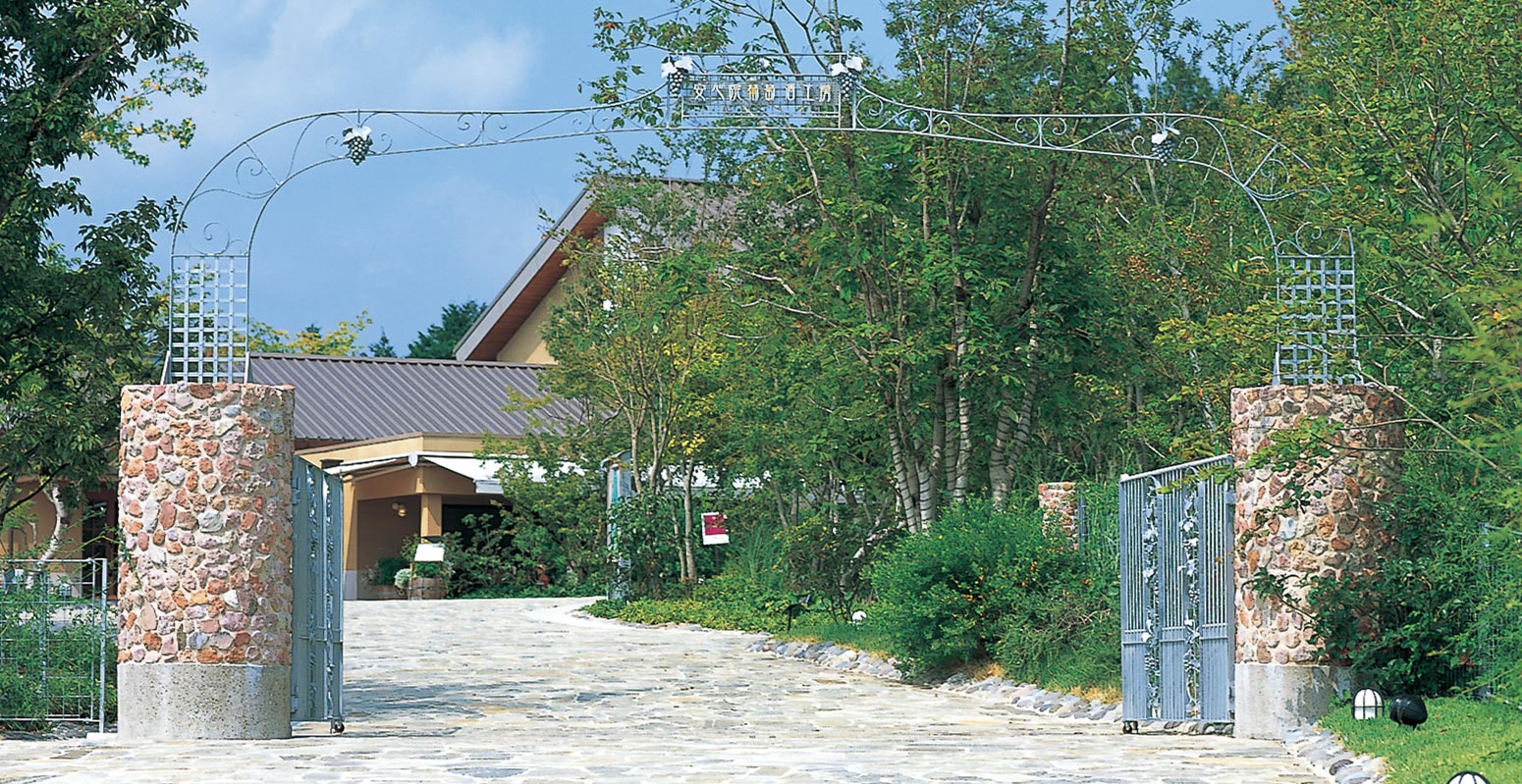 「安心院葡萄酒工房」は、三和酒類株式会社が大分県宇佐市安心院町(あじむまち)で運営するワイナリーです。霧深い盆地であるこの地特有の温度差の激しい気候を活かし、良質のぶどうを育て、芳醇なワインを醸します。