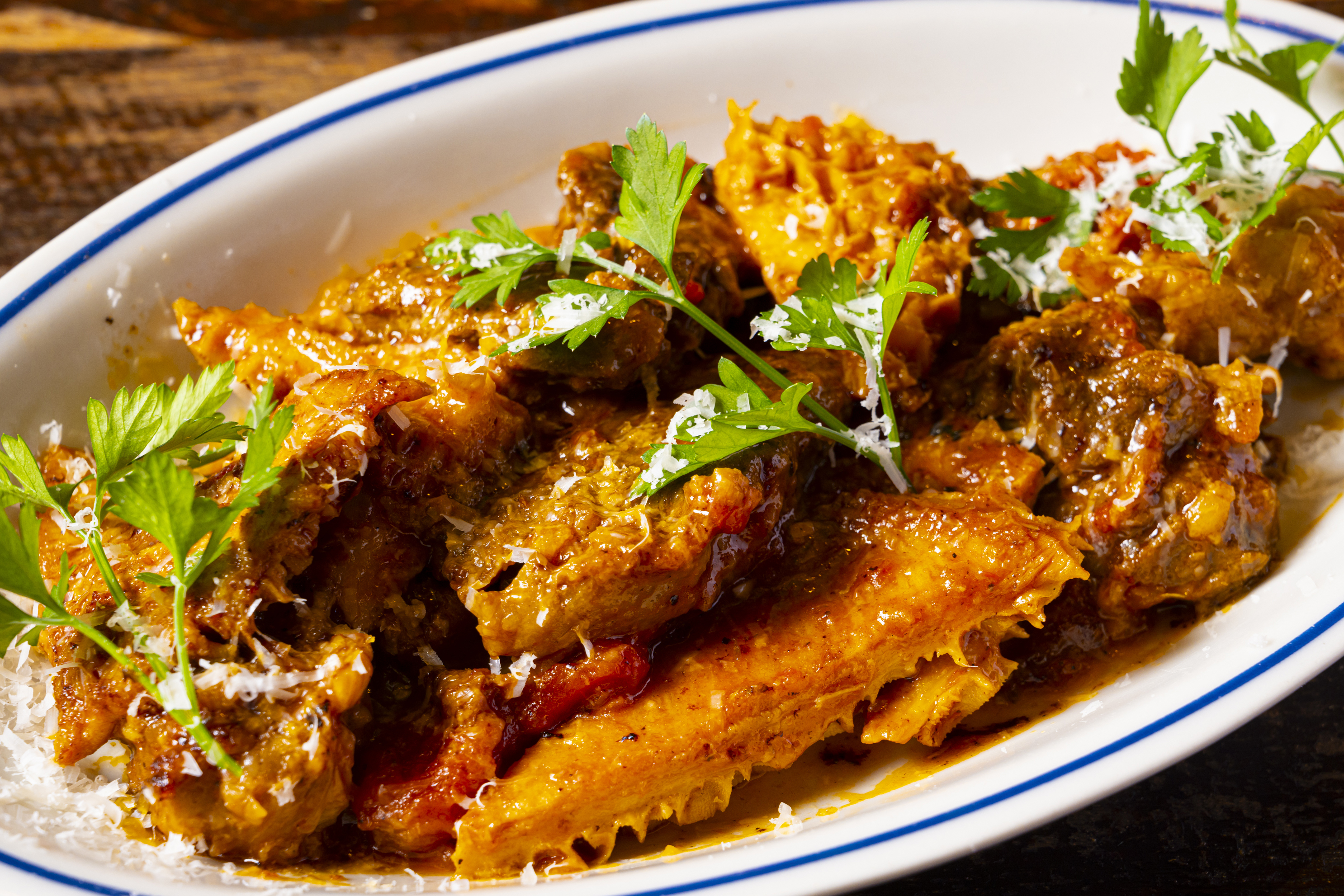 ホロホロになるまで柔らかく煮込んだハチノスと、おおぶりにカットした牛スジを2種のトマトソースで更に長時間じっくり味をいれながら追い煮込み。手間ひまかけて作るこのトリッパは、「BISTRO NONKI」でしか味わえないまさにスペシャリテ。その他にも多数の煮込み料理をご用意しています。