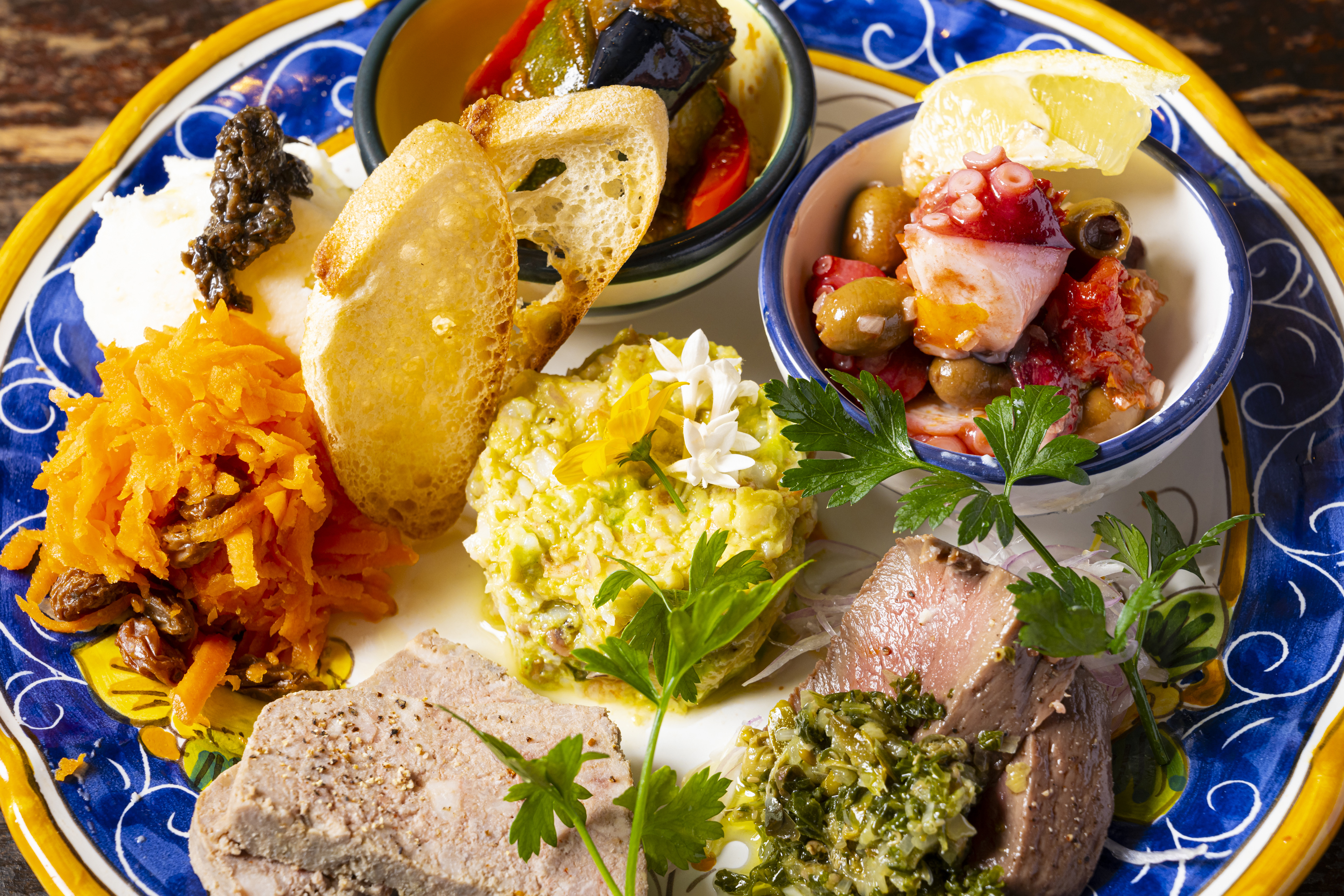 多種多彩に食事のスタートを盛り立てるアンティパスト