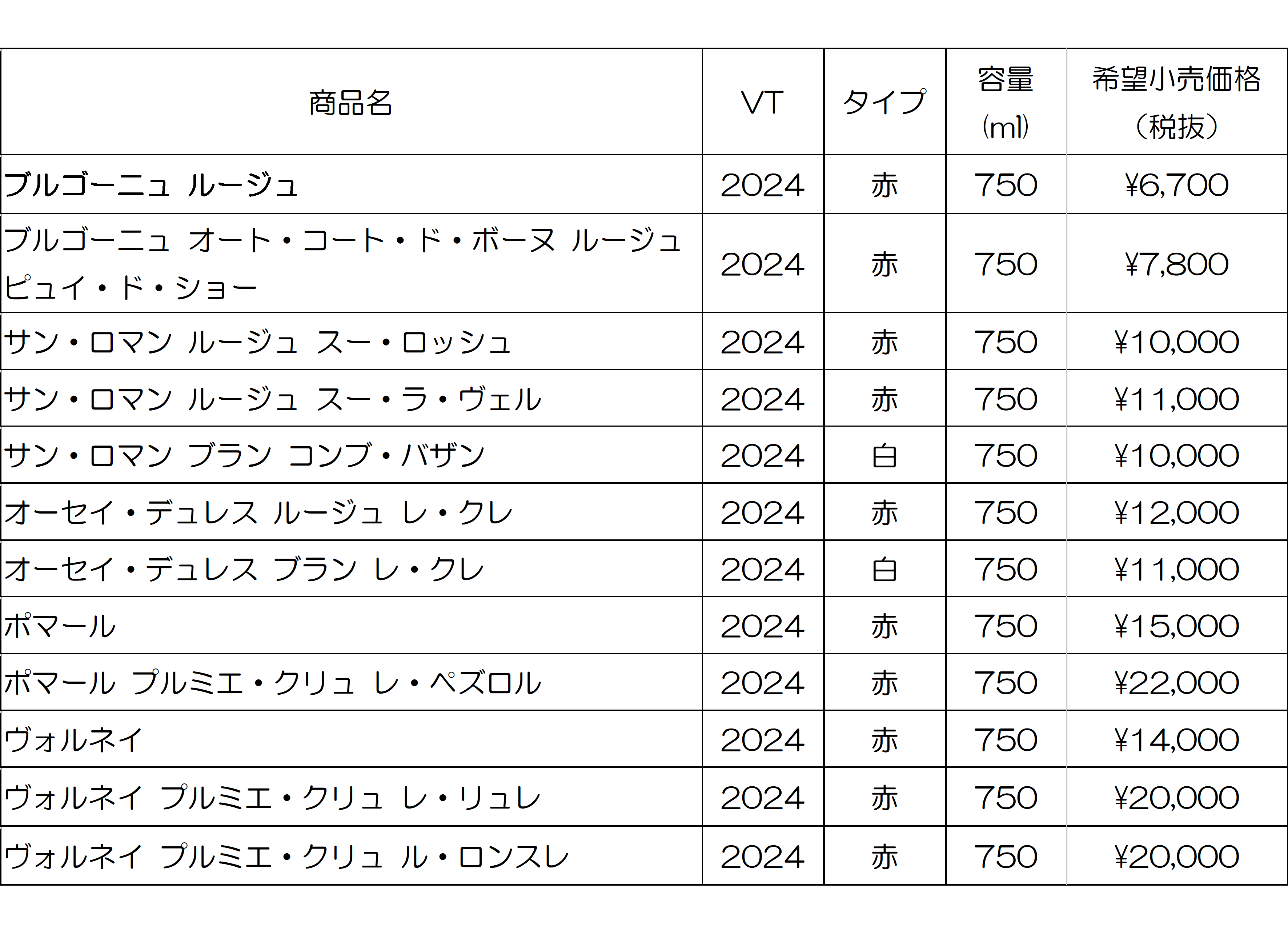 商品名:シャソルネイ サン・ロマン ブラン コンブ・バザン 2024