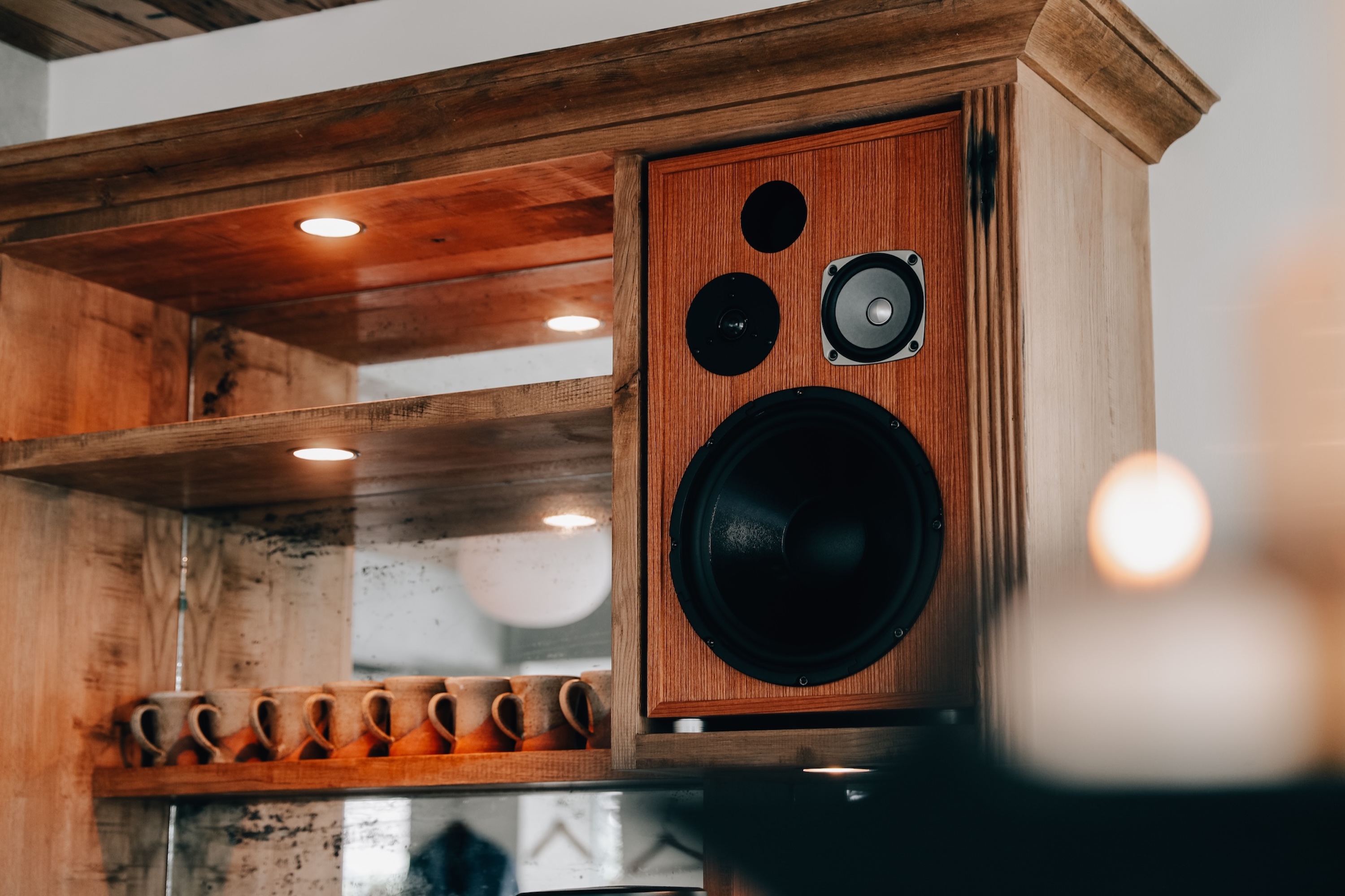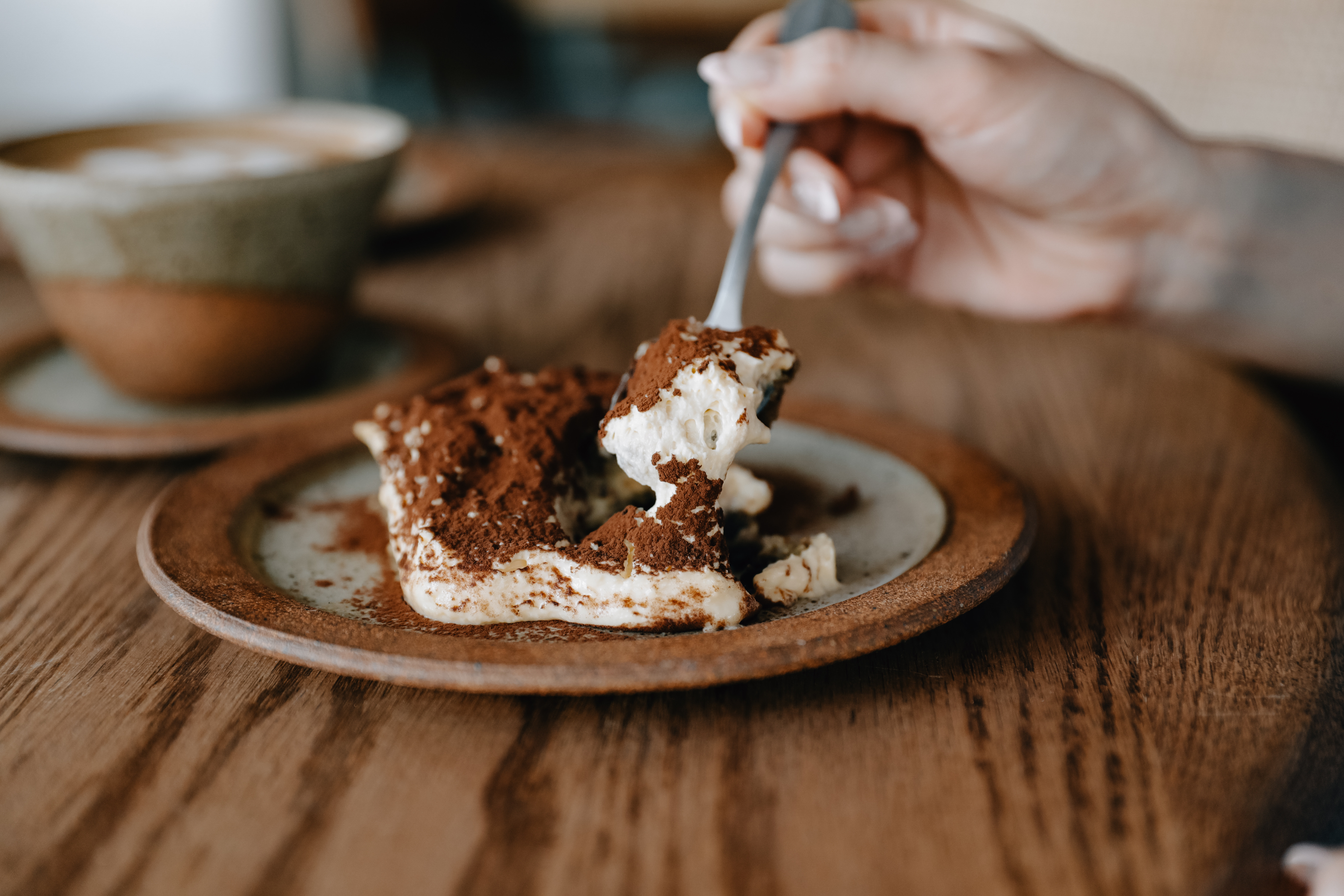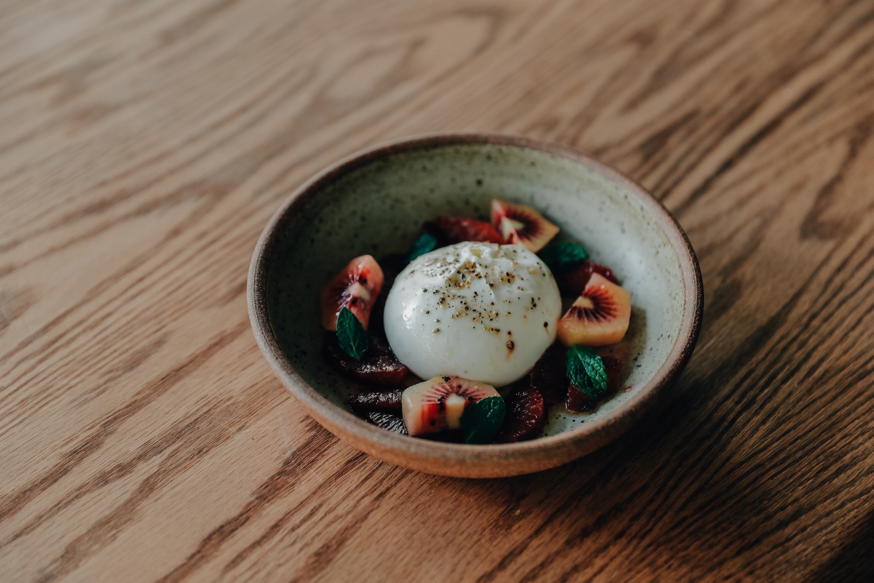 ヴィンテージとモダンが融合する店内は、ブラウン、ホワイト、グレーを基調に、稀少な古材を使用しオリジナルで製作した什器や家具を配置。床やカウンター天板の天然大理石に対しベビーピンクのタイルを差し色で使い、温もりある空間に。テーブル席に加えて、バーカウンターと個室をご用意しています。