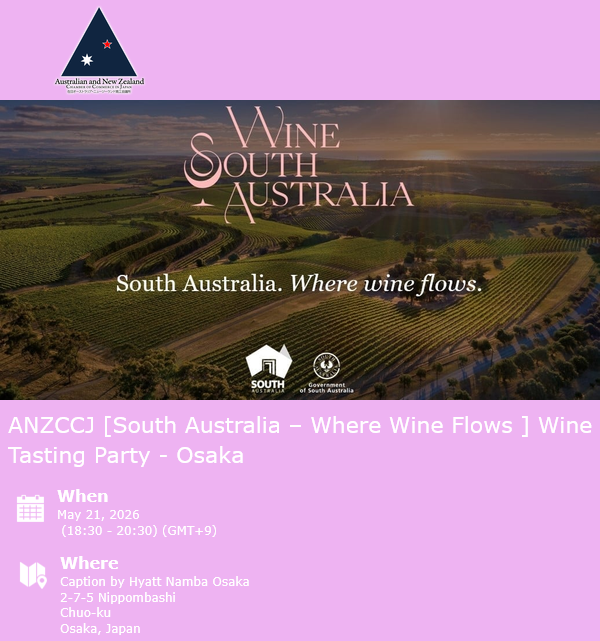 【大阪開催パーティー】ANZCCJ South Australia – Where Wine Flows Wine Tasting Party