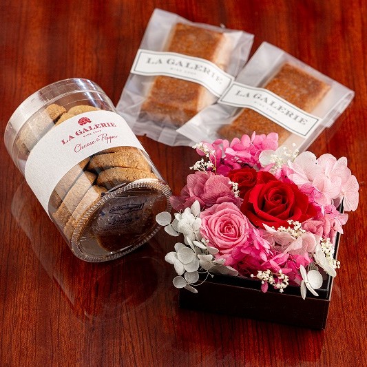 赤ワインとフラワーボックスと焼き菓子のセット7,500円 (税込)