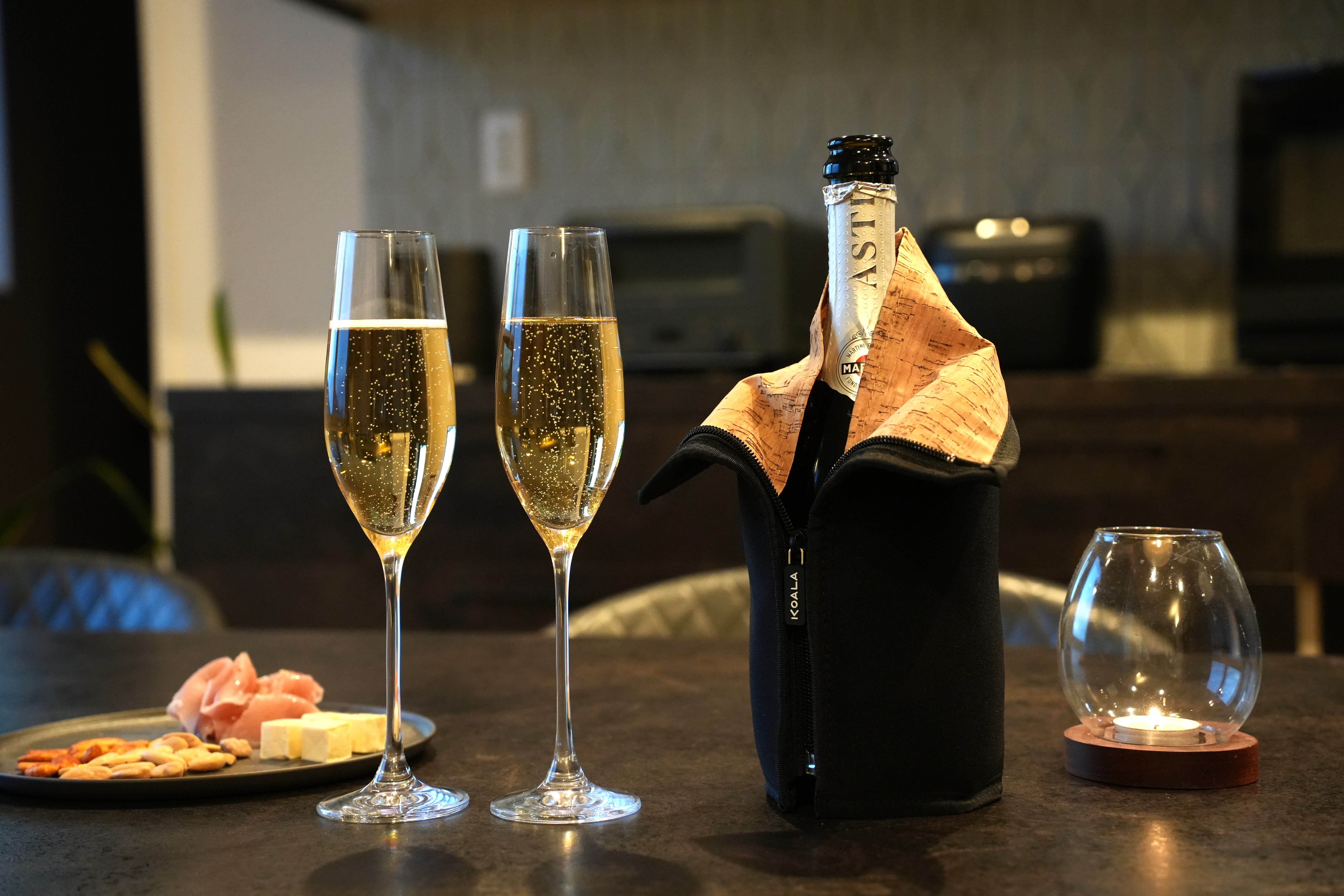 タキシードデザインは、食卓に高級感をもたらし、シャンパンやワインの存在感を際立たせます。
