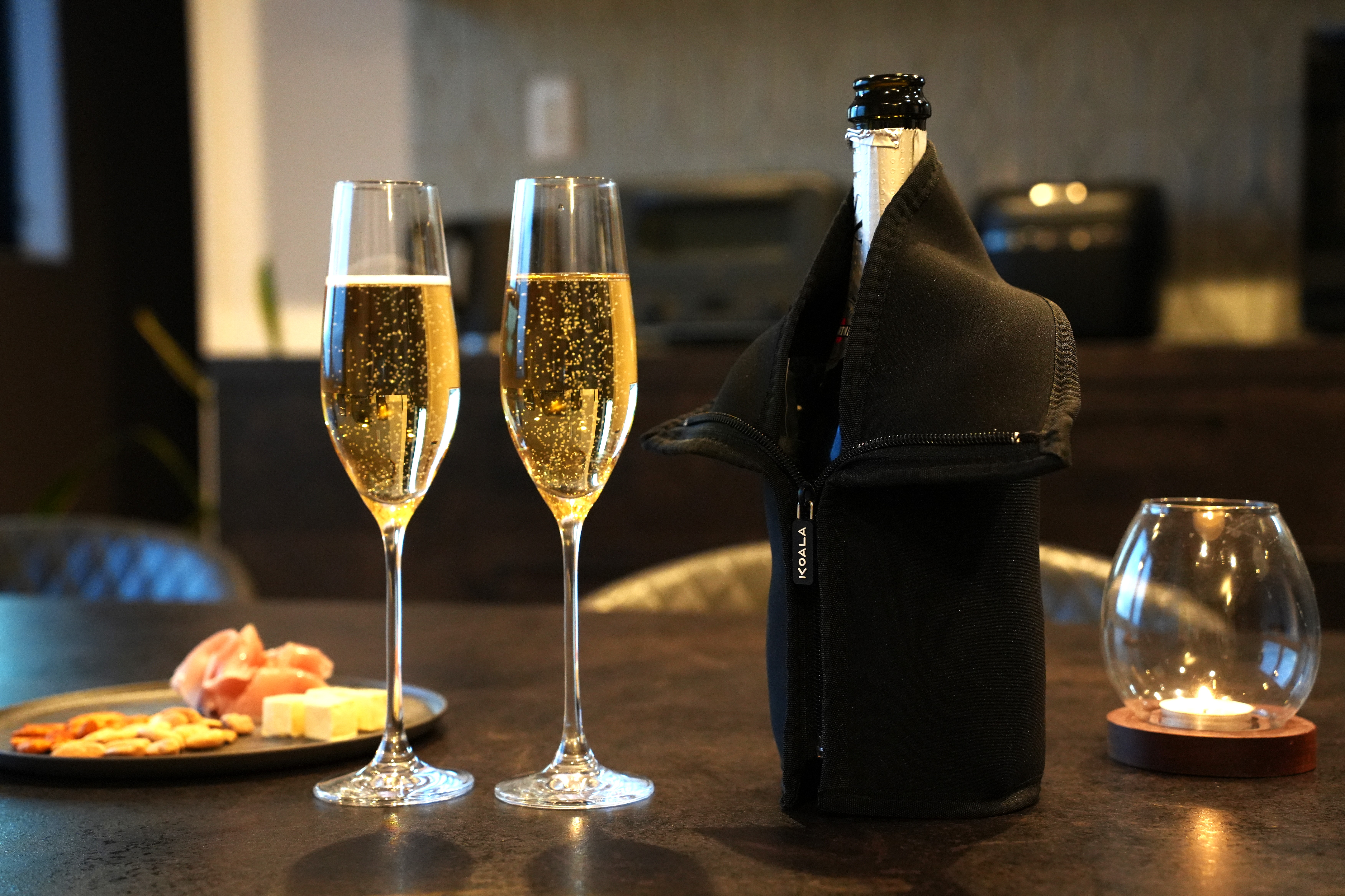 ジッパーで調節可能。ワインにもシャンパンにも対応