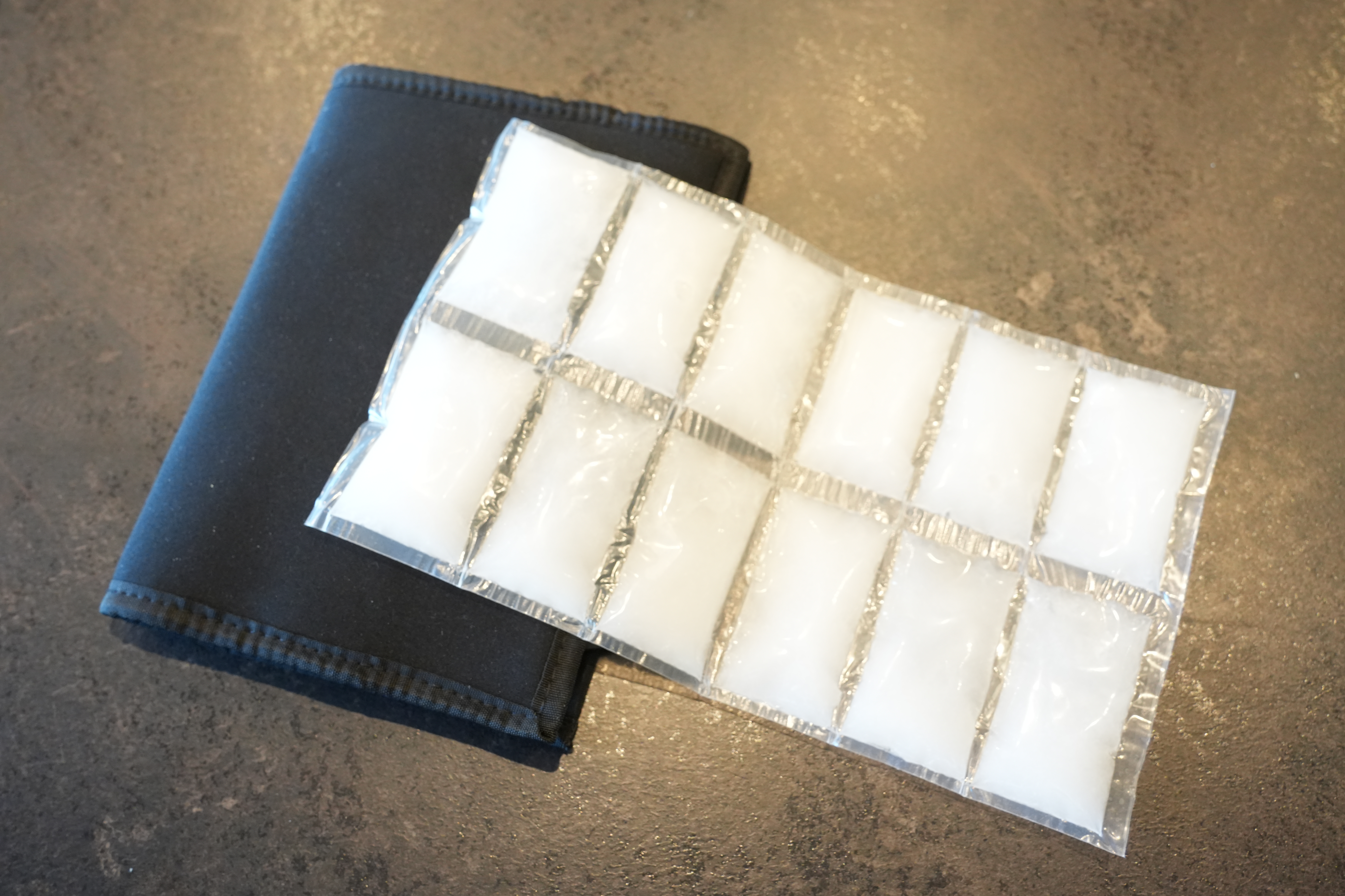 内部にはスペイン製の特殊冷却ジェルを内蔵し、12区画に分かれた設計により、凍っても柔軟性を持ち、ボトルに密着します。
