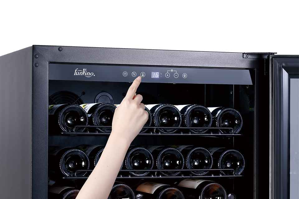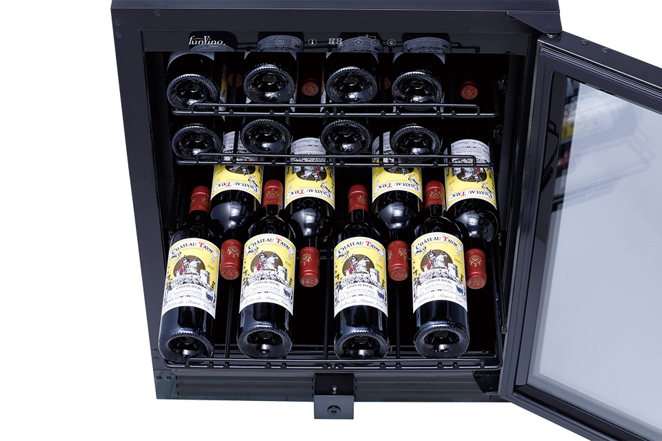 日常的な提供オペレーションにおける使いやすさと、50本を収納できるほどよいサイズ感を兼ね備えた1温度帯のワインセラーです。