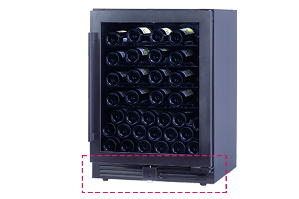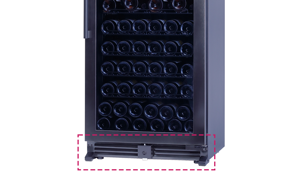 セラー前面下部からコンプレッサーの熱を排気し、外気を取り込む前面給排気構造を採用しています。