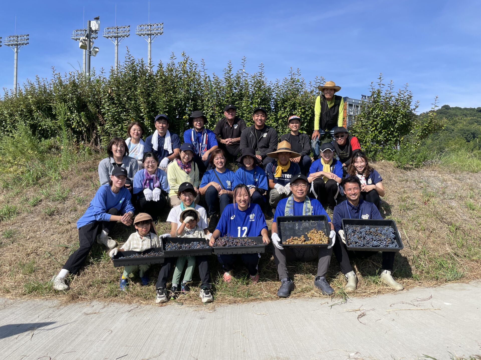 本プロジェクトは2021年、「スタジアムの外構部分で新しいチャレンジをしたい」という岡田武史会長の提案から始まりました。翌年には256本の苗木を植えたものの、土壌の栄養不足や病気、そして昨年は収穫直前にすべての実を鳥にたべられてしまうという、厳しい現実に直面してきました。